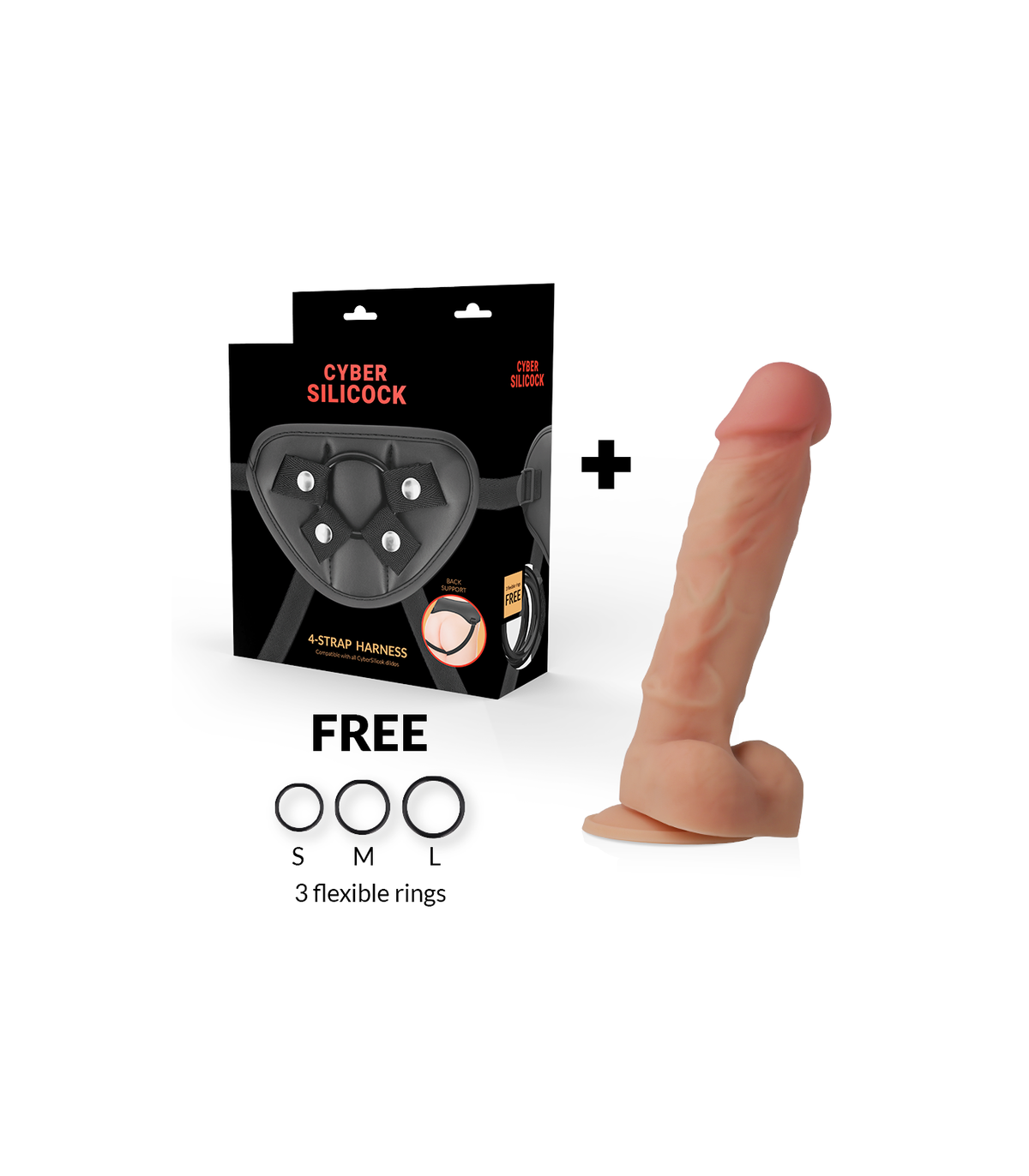 Cuando compras este producto obtiene; ARNES + DILDO CYBERSILICOCK + 3 ANILLAS SILICONA.