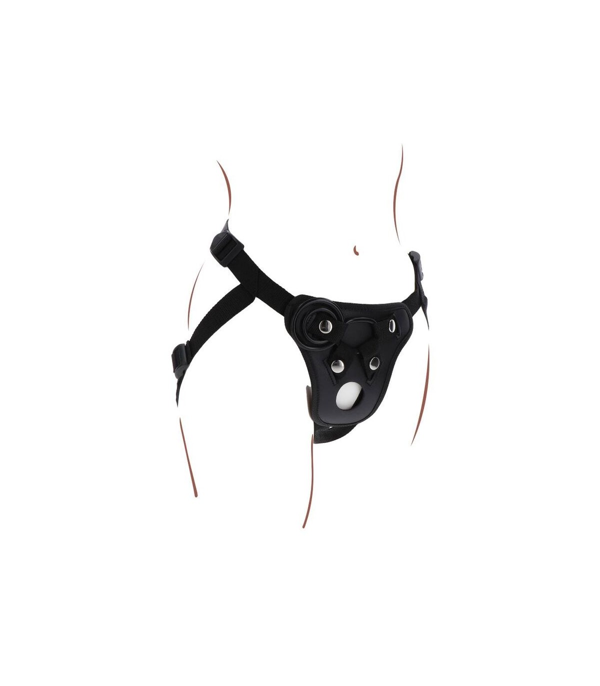 La parte delantera está diseñada con cierres ajustables. Incluye 3 anillos de silicona 3,5 & 4,5 y 5 cm que te permiten usar tu dildo favorito.