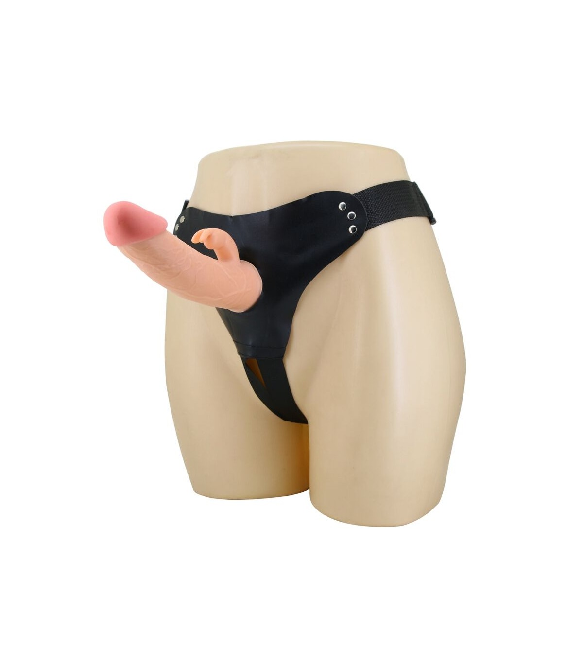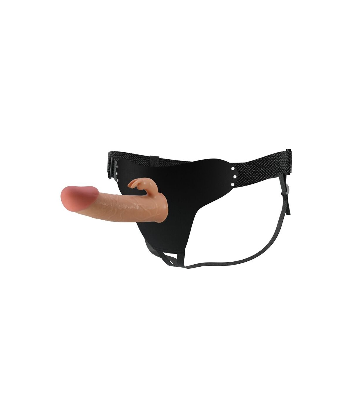¡Toma el control y satisface a tu pareja en la cama con el consolador de conejo con arnés y correa de PRETTYLOVE!