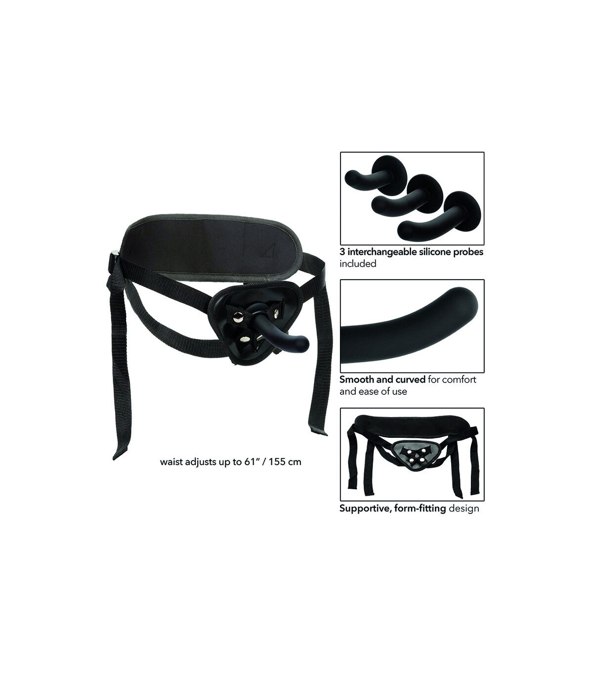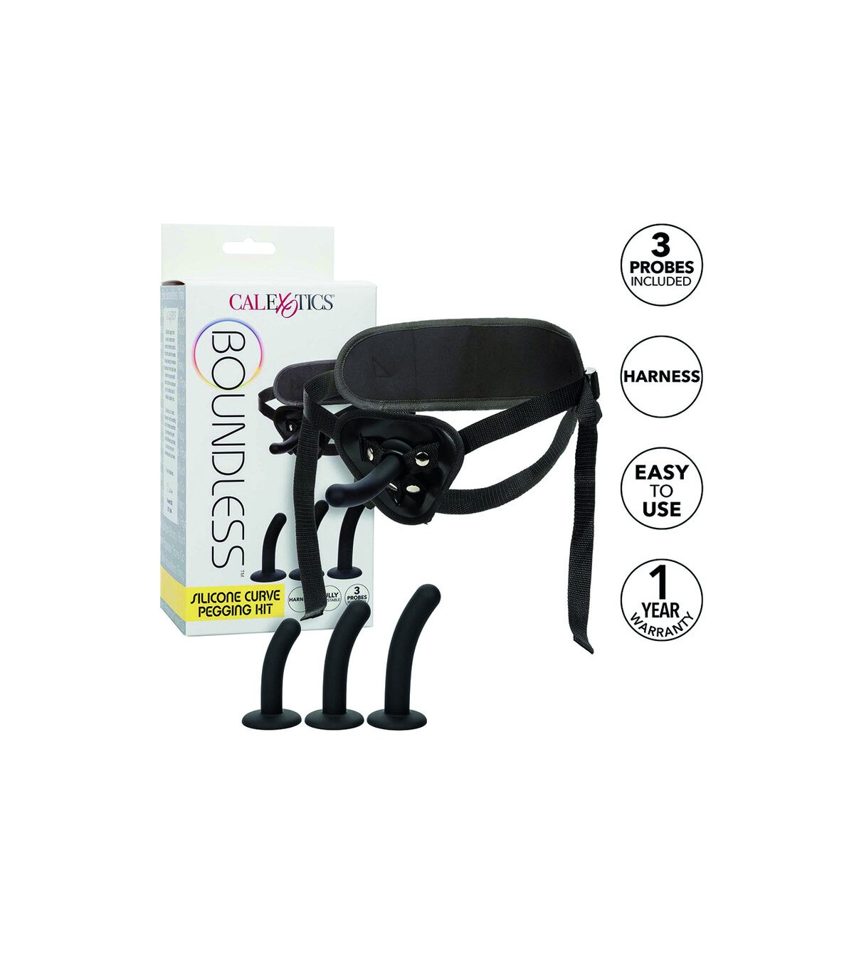 Presentamos el Boundless Silicone Curve Pegging Kit para experiencias inolvidables. Este paquete completo incluye un arnés universal con correas ajustables para un ajuste seguro y cómodo. El diseño ceñido proporciona estabilidad y control durante el juego, con un cierre discreto para cambiar fácilmente las tres sondas de silicona curvadas incluidas. Fabricadas con silicona de alta calidad, las sondas ofrecen una textura suave y aterciopelada y estimulación precisa. Con diferentes tamaños, personaliza tu experiencia y explora niveles de placer variados. Ya seas principiante o usuario experimentado, el Boundless Silicone Curve Pegging Kit satisface tus deseos, ofreciendo versatilidad y libertad en emocionantes aventuras de pegging.