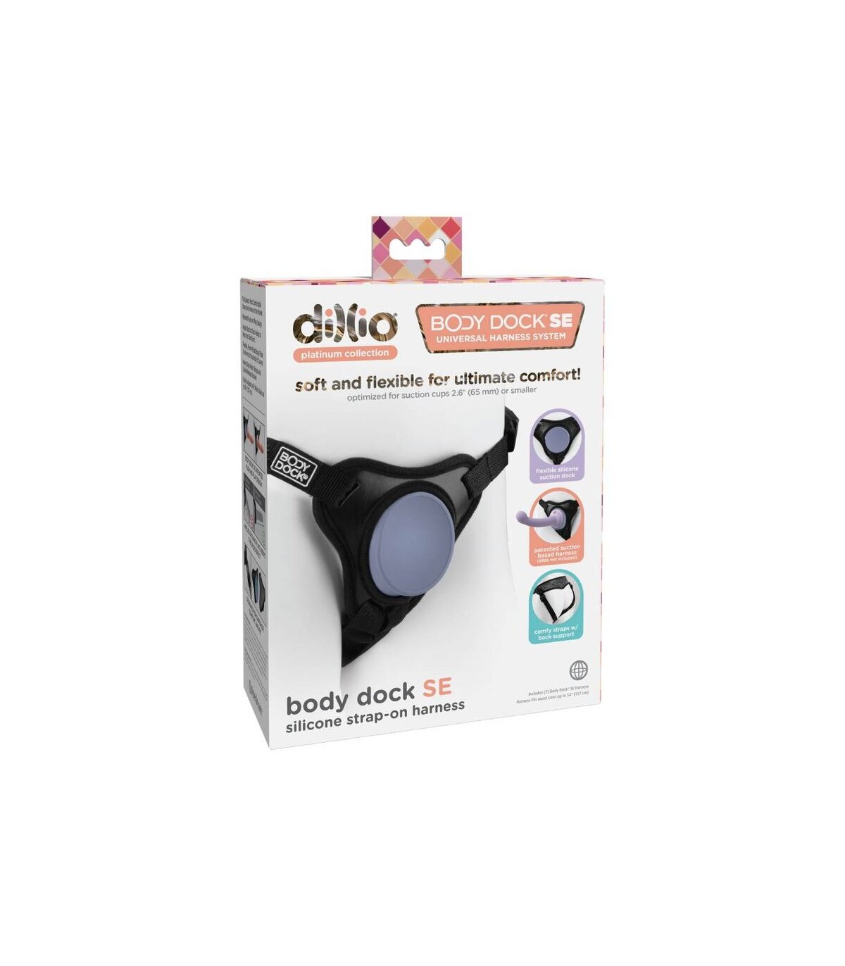 El sistema de arnés universal patentado es el sistema de arneses universal es el muelle del cuerpo más fácil y cómodo que hemos hecho! Es tan simple como unir la taza de succión en su consolador o vibrador favorito a la placa de acoplamiento de silicona. Sin anillos. Sin instantáneas. Sin molestia. Lo mejor de todo es que funciona con la mayoría de los consoladores en el mercado hoy, incluidos algunos que ya posee.