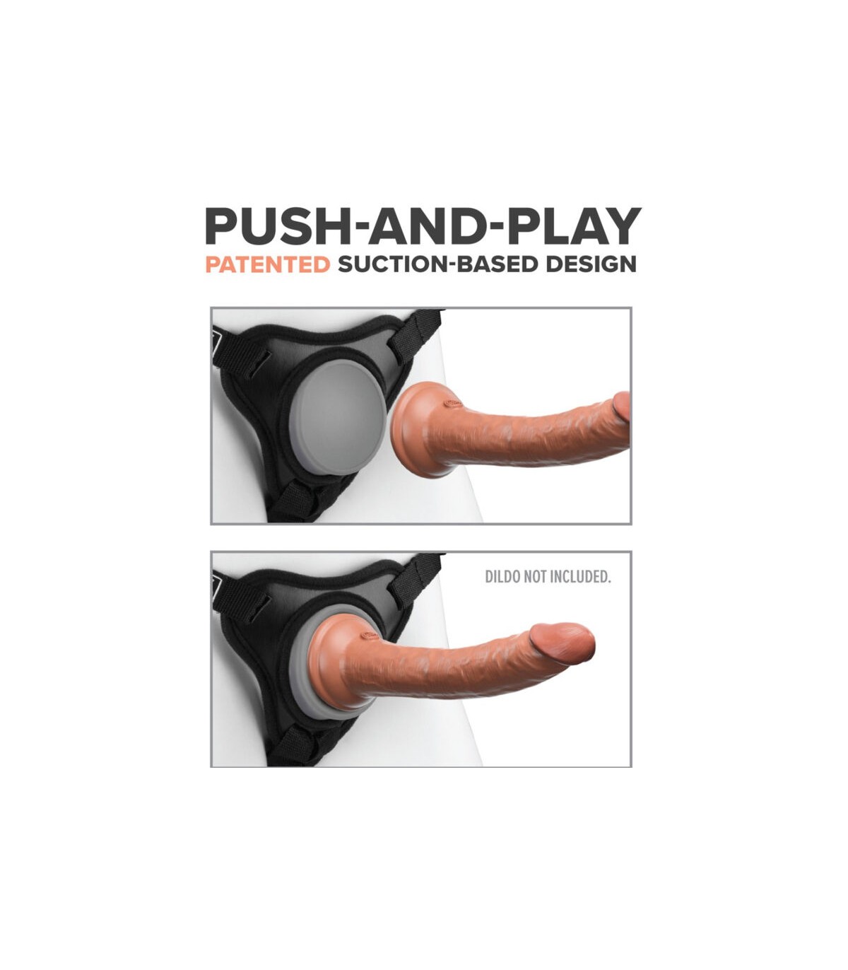 ¡Presiona y juega! Simplemente presiona la ventosa de tu dildo o vibrador favorito contra el muelle de succión cóncavo hasta que TODO el aire entre ellos sea liberado. ¡La succión crea una unión super fuerte sin necesidad de anillos o broches!