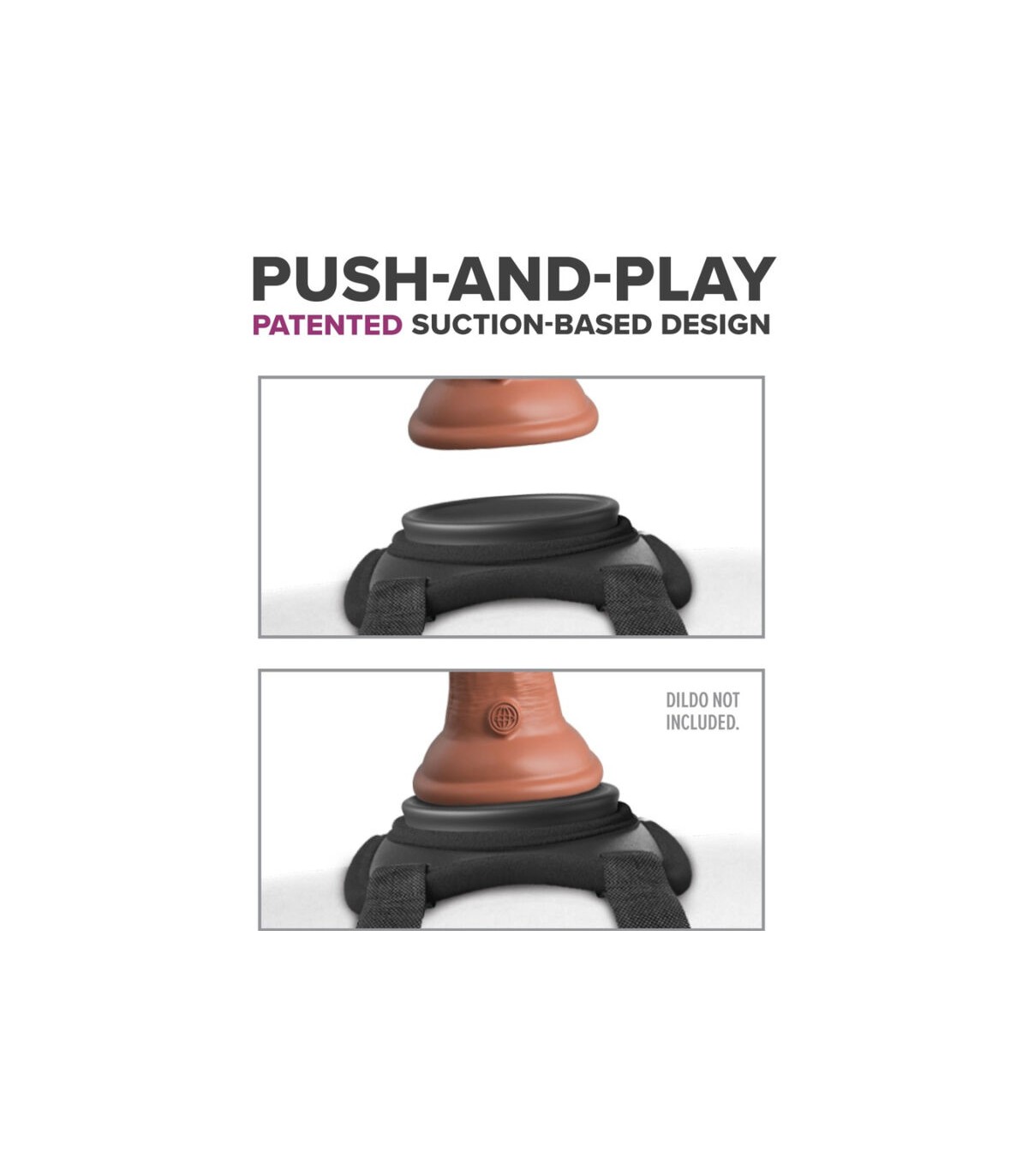 ¡Empuja y juega! Simplemente presiona la ventosa de tu dildo o vibrador favorito contra la base de succión cóncava ¡hasta que todo el aire entre ellos se libere! La succión crea una unión super resistente sin necesidad de anillos o broches.