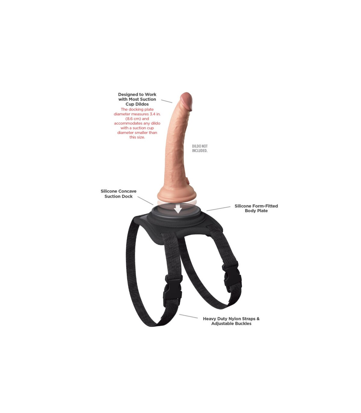 A todos les encanta un buen baile sensual, pero ¿no desearías llevarlo un poco más lejos a veces? ¡Bueno, ahora puedes hacerlo con la patentada Body Dock Lap Strap! Viene con una placa de acoplamiento premium de silicona y hebillas ajustables de liberación lateral, para que puedas llevarla cómodamente en tu pierna/muslo mientras tu pareja te ofrece el baile sensual más sexy que hayas tenido. ¡Cambiar tu accesorio favorito strap-on nunca ha sido tan rápido o fácil! Es tan simple como sujetar la ventosa de tu dildo o vibrador favorito a la placa de acoplamiento, mientras que las correas de nylon se ajustan fácilmente para adaptarse a la mayoría de tallas y tipos de cuerpo. Lo mejor de todo es que funciona con la mayoría de los dildos disponibles en el mercado hoy en día, incluyendo algunos que quizás ya tengas. ¡Sin anillos. Sin broches. Sin complicaciones!