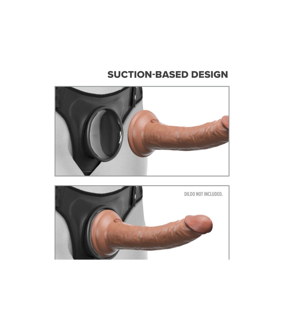¡Empuja y juega! Simplemente empuja la ventosa de tu dildo o vibrador favorito contra el acoplamiento de succión cóncavo hasta que TODO el aire entre ellos se libere. La succión crea una unión súper fuerte sin necesidad de anillos o broches.