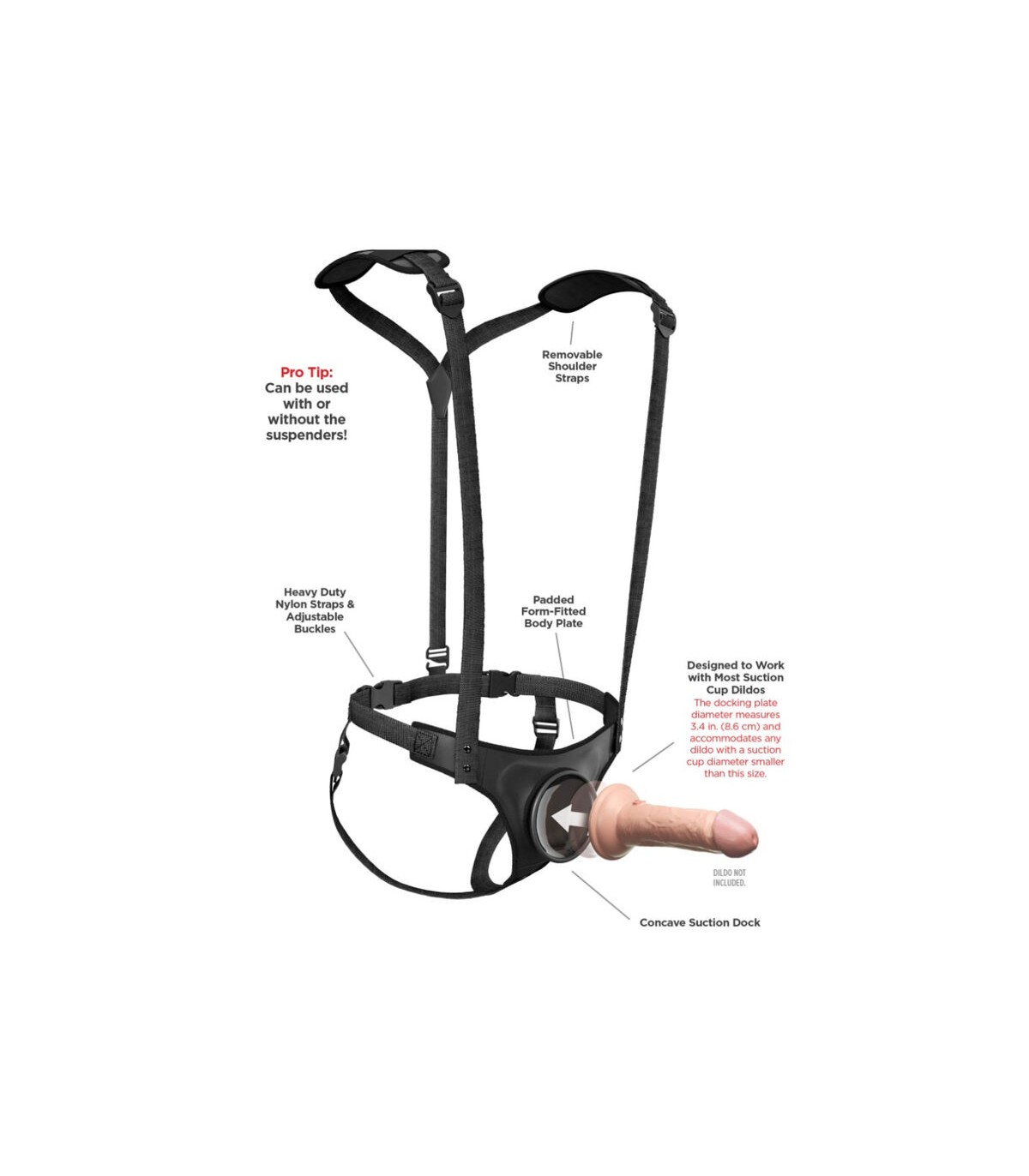¡Las bretas para arnés Body Dock patentadas llevan el juego con arnés a un nivel completamente nuevo! No solo son elegantes, sino que también brindan el máximo soporte y comodidad con la placa acolchada de ajuste perfecto al cuerpo, las bretas desmontables, las hebillas ajustables de liberación lateral y las hombreras removibles. ¡Cambiar tu accesorio favorito para arnés nunca ha sido tan rápido ni fácil! Es tan simple como sujetar la ventosa de tu dildo o vibrador favorito a la placa de acoplamiento, mientras las correas de nylon se ajustan fácilmente para adaptarse a la mayoría de las tallas y tipos de cuerpo. Lo mejor de todo es que funciona con la mayoría de los dildos disponibles en el mercado hoy en día, incluidos algunos que quizás ya tengas. ¡Sin anillos. Sin broches. Sin complicaciones!