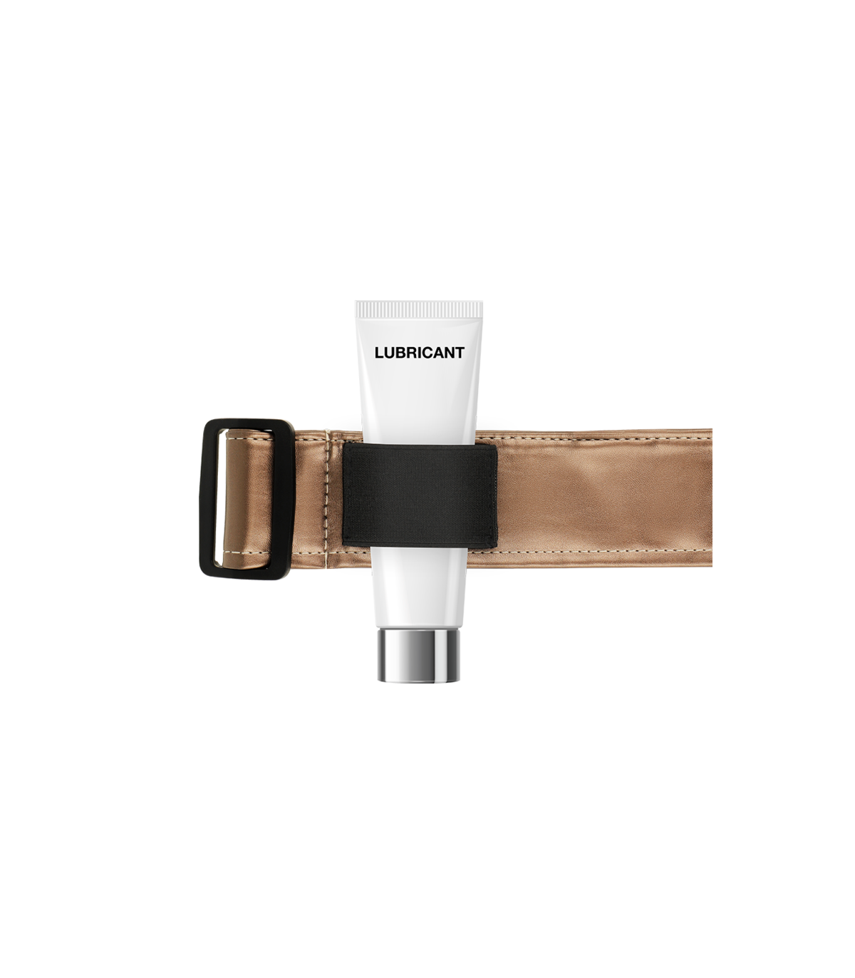 El arnés dispone en los laterales de una goma elástica que podrá ser utilizada para colocar el control remoto “Watchme”, un bote de lubricante, aceite o lo que prefieras. Este elástico está colocado a la altura de la cadera, a ambos lados del cuerpo para que tanto diestros como zurdos puedan utilizarlo cómodamente.