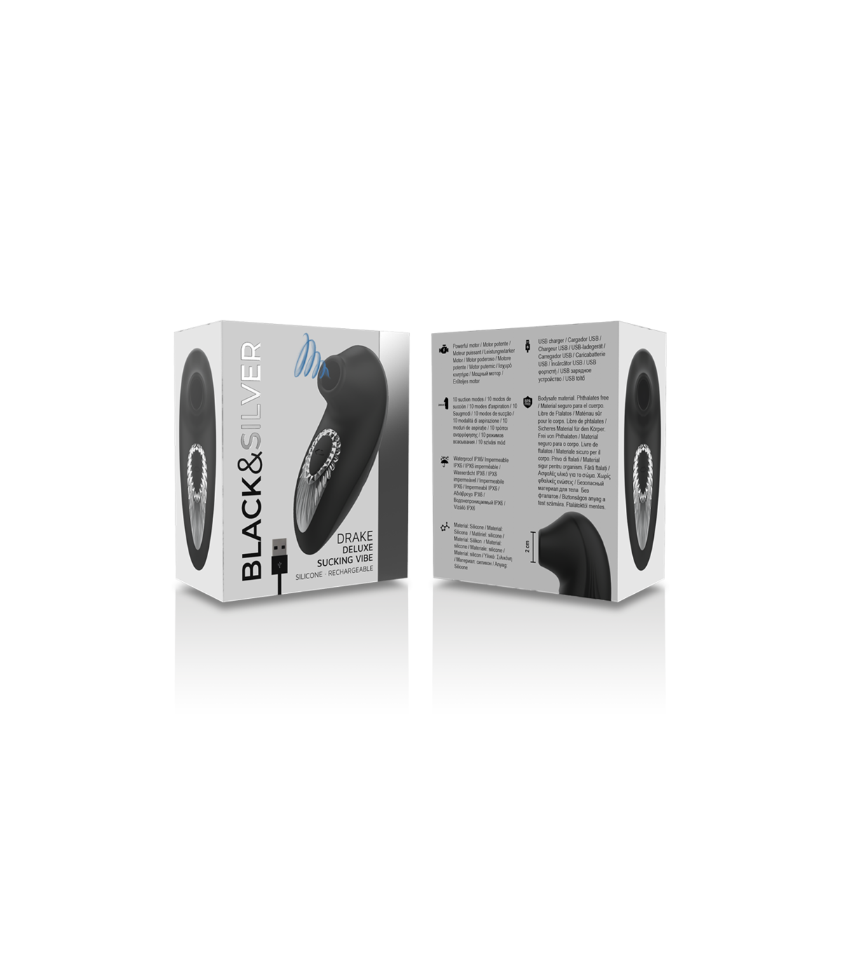 Black&Silver™ Drake es el dispositivo de bienestar sexual definitivo cuando se trata de estimulación del clítoris. Disfruta de 10 programas de succion con su potente motor. El Black&Silver™ Drake inunda tu cuerpo con estas ondas de placer, creando una sensación particularmente natural y permitiendo orgasmos nítidos como nunca antes habías experimentado. ¿Prefieres provocar tu clítoris con la familiar tecnología Black&Silver™ Drake y completamente sin contacto?