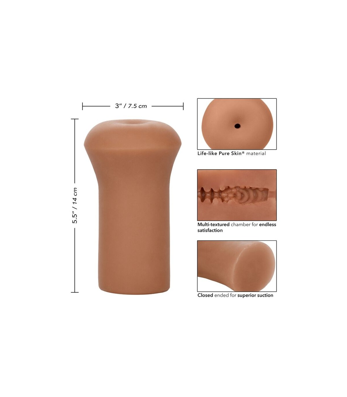 Material de piel pura realista | Suave, apretado y elástico | Cámara multitextura para una satisfacción infinita | Extremo cerrado para una succión superior | Higiénicamente superior y sin mantenimiento