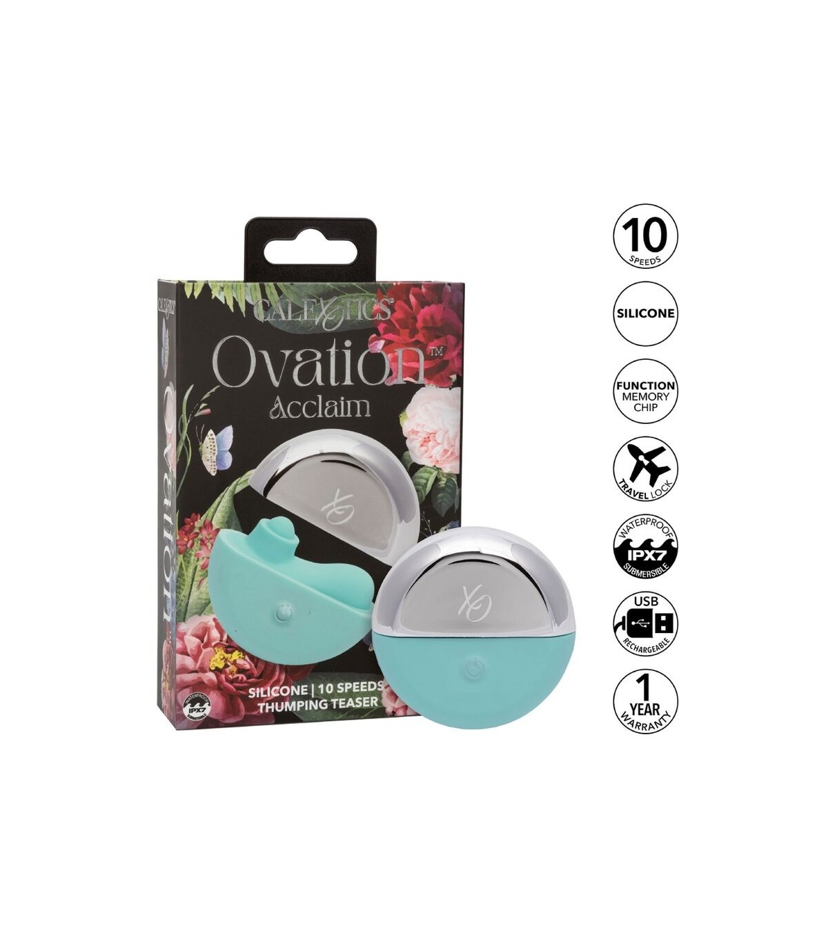 Experimenta un placer intenso con el Ovation Acclaim, que presenta curvas ergonómicas para estimulación precisa. Explora 10 velocidades pulsantes para sensaciones diversas. Su discreto estuche magnético garantiza privacidad. Elaborado con silicona segura para el cuerpo, es resistente al agua y sumergible para diversión en el baño. Con un chip de memoria, recuerda tu última configuración, y una función de bloqueo de viaje asegura un transporte sin preocupaciones. Mantente alimentado con la recarga USB, proporcionando 45 minutos de pulsaciones a alta velocidad o 70 minutos a baja velocidad.