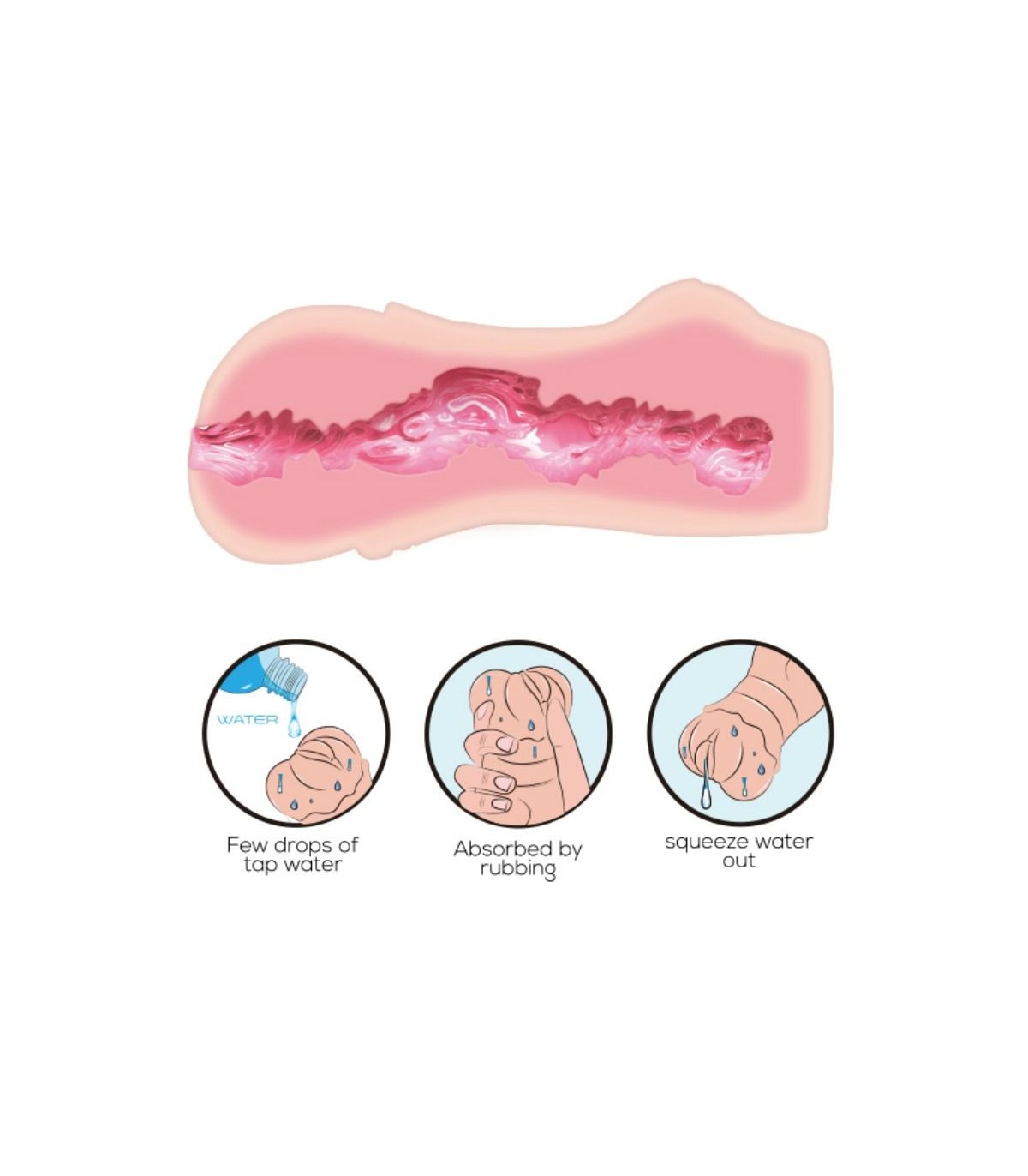 Siente con este masturbador para hombres el verdadero placer de una masturbación como nunca antes. Como si de piel real se tratara y con un texturado único interior, simula a una vagina real con todos los detalles y sensaciones, pero... eso no es lo mejor, está fabricado de waterskin, esto quiere decir que si aplicas agua antes de usar, su material especial lo absorve, y sirve de autolubricación cuando la acción comience!