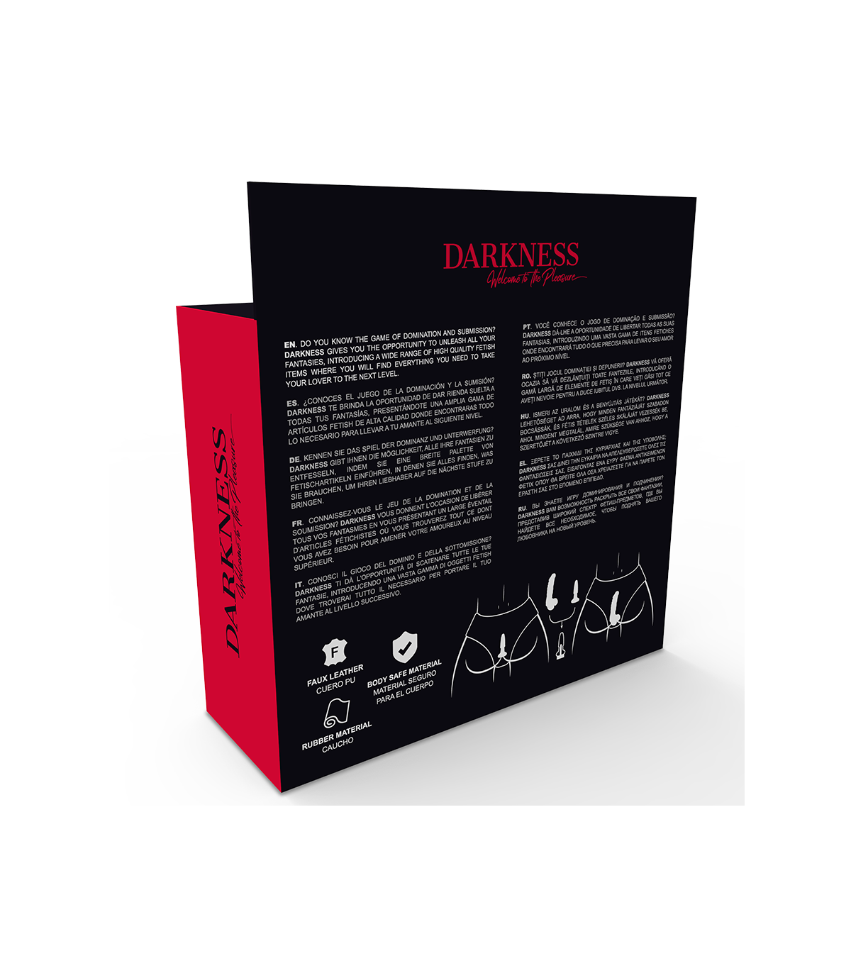 ¿Conoces el juego de la dominación y la sumisión? Darkness te brinda la oportunidad de dar rienda suelta a a todas tus fantasías, presentándote una amplia gama de artículos fetish de alta calidad donde encontrarás todo lo necesario para llevar a tu amante al siguiente nivel.