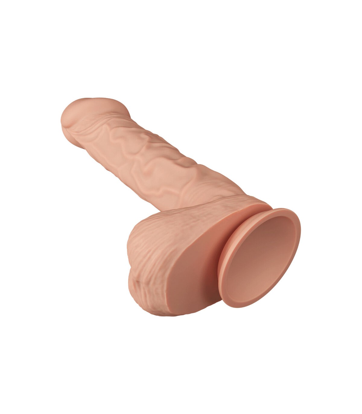 Nuevo consolador enorme realista. ¡Perfecto para una satisfacción verdaderamente gigantesca! Consolador del color de la piel en forma de pene realista. El consolador tiene un glande abultado, venas en el eje y testículos suaves. La ventosa adicional hace posible la diversión con las manos libres. Con una longitud total insertable y una circunferencia de pulgadas considerables, el consolador seguramente satisfará.