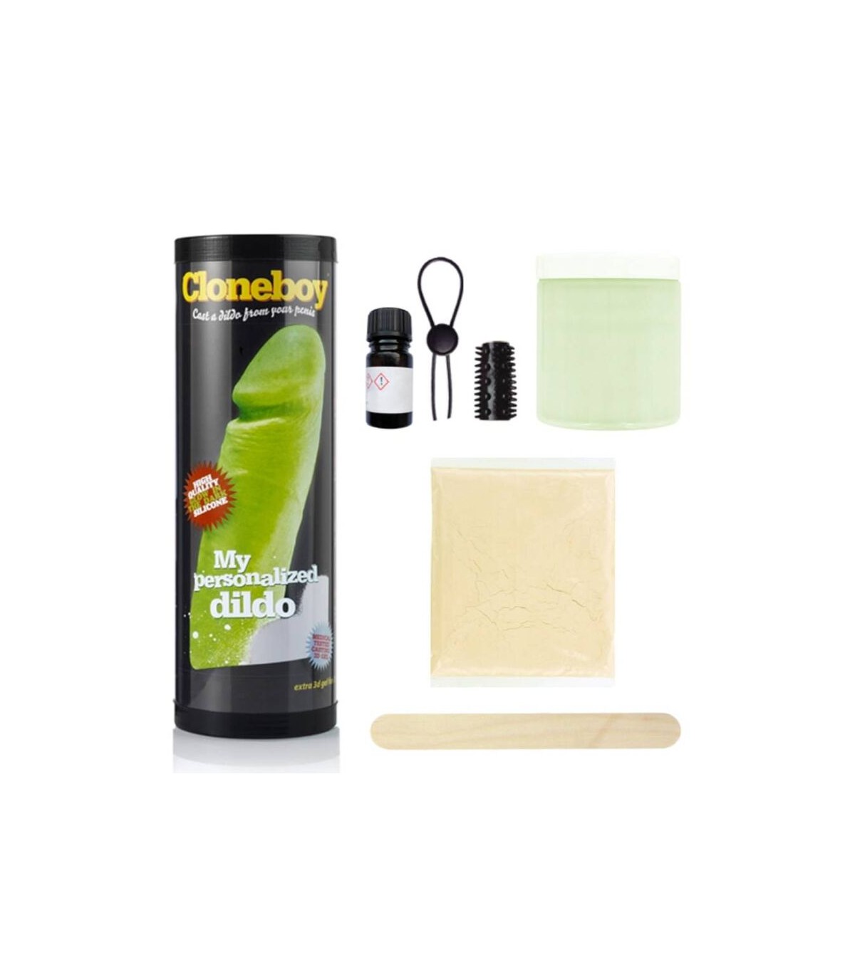 El kit Cloneboy Cast Your Own Dildo contiene todos los elementos necesarios para hacer una copia de caucho de silicona de su pene, ya sea solo o junto con su pareja. El Cloneboy no contiene yeso que pueda irritar la piel y utiliza un material de moldeo probado médicamente hecho de algas naturales.