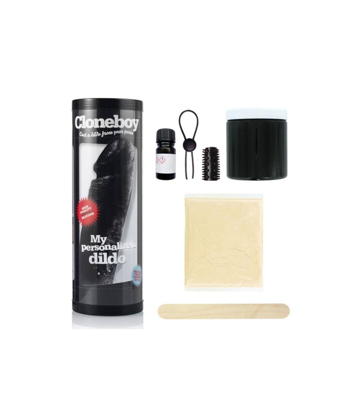 El kit Cloneboy Cast Your Own Dildo contiene todos los elementos necesarios para hacer una copia de caucho de silicona de su pene, ya sea solo o junto con su pareja. El Cloneboy no contiene yeso que pueda irritar la piel y utiliza un material de moldeo probado médicamente hecho de algas naturales.