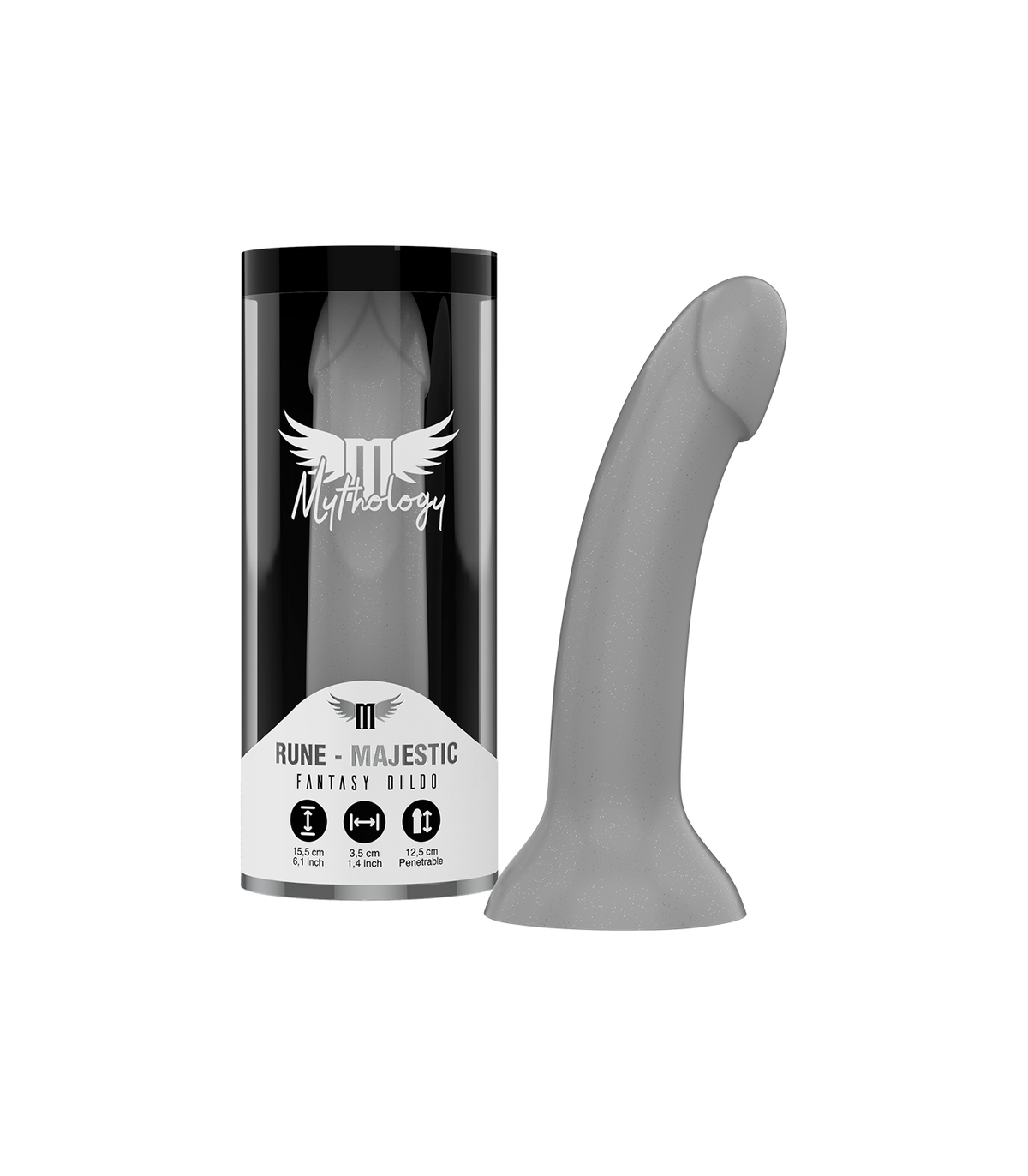 MYTHOLOGY consta de una gama de dildos, todos ellos de silicona de alta gama, disponibles en dos versiones (con vibración y sin vibración) y distintos tamaños (S, M, L). La versión con vibración, recargable, compatible con la tecnología Watchme.