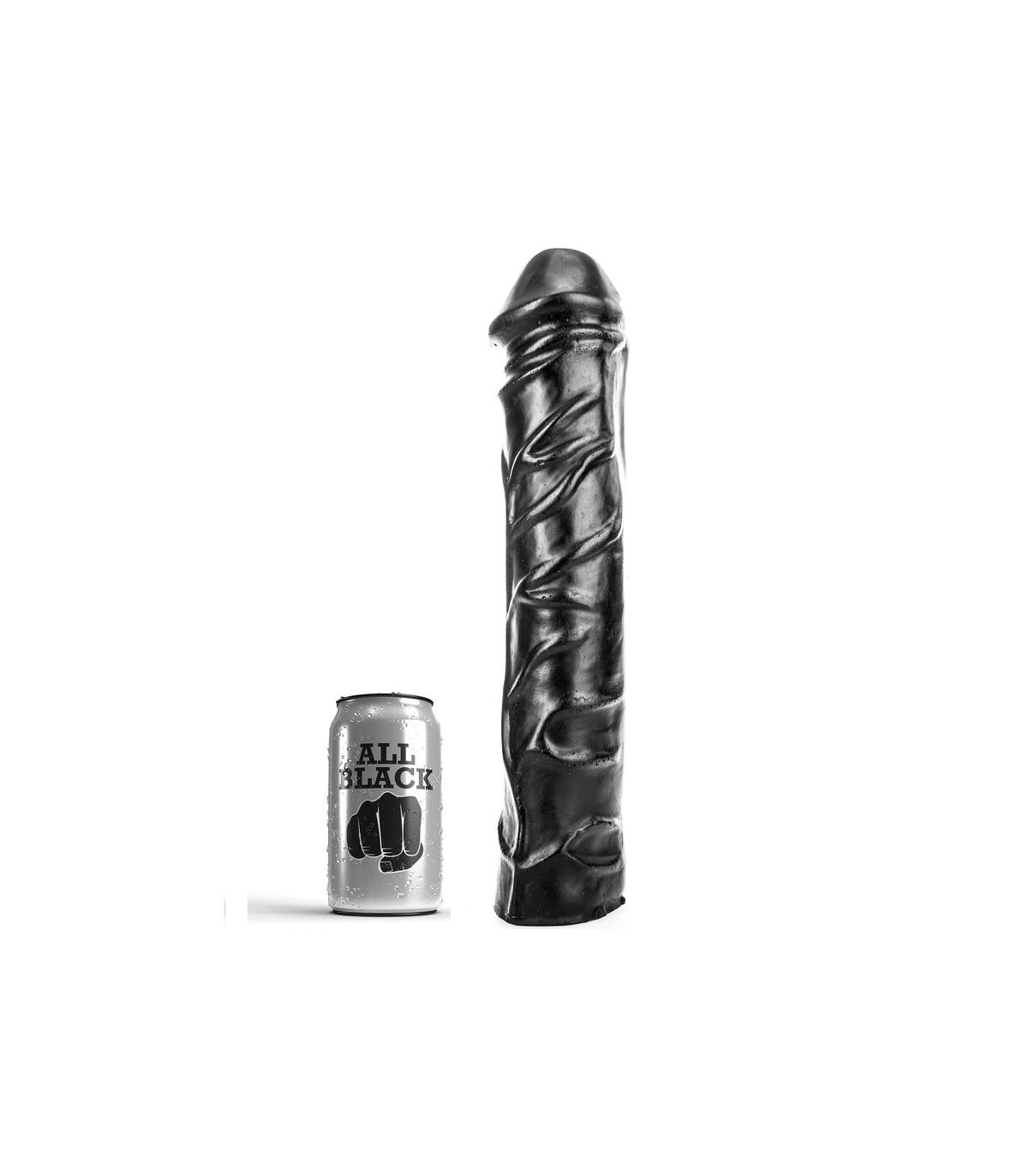 Este consolador All Black tiene un color negro intenso y un tirón con forma realista y venas gruesas en el eje.