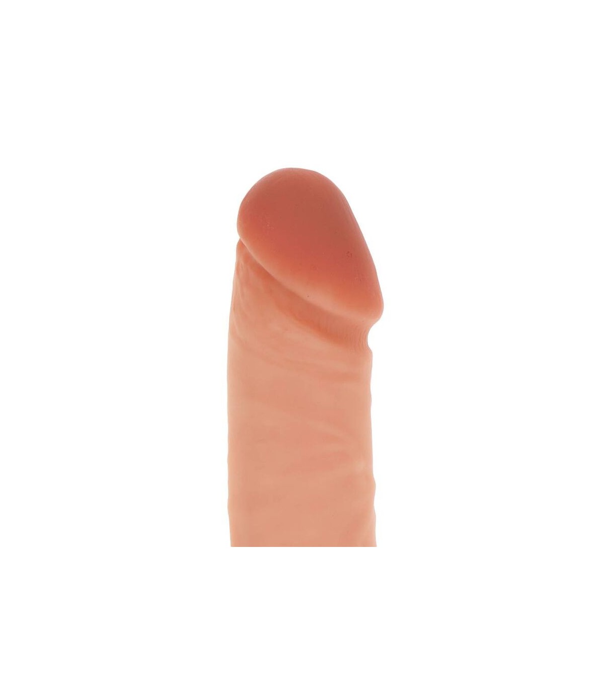 Este consolador placentero es de color carne y tiene una silueta realista.