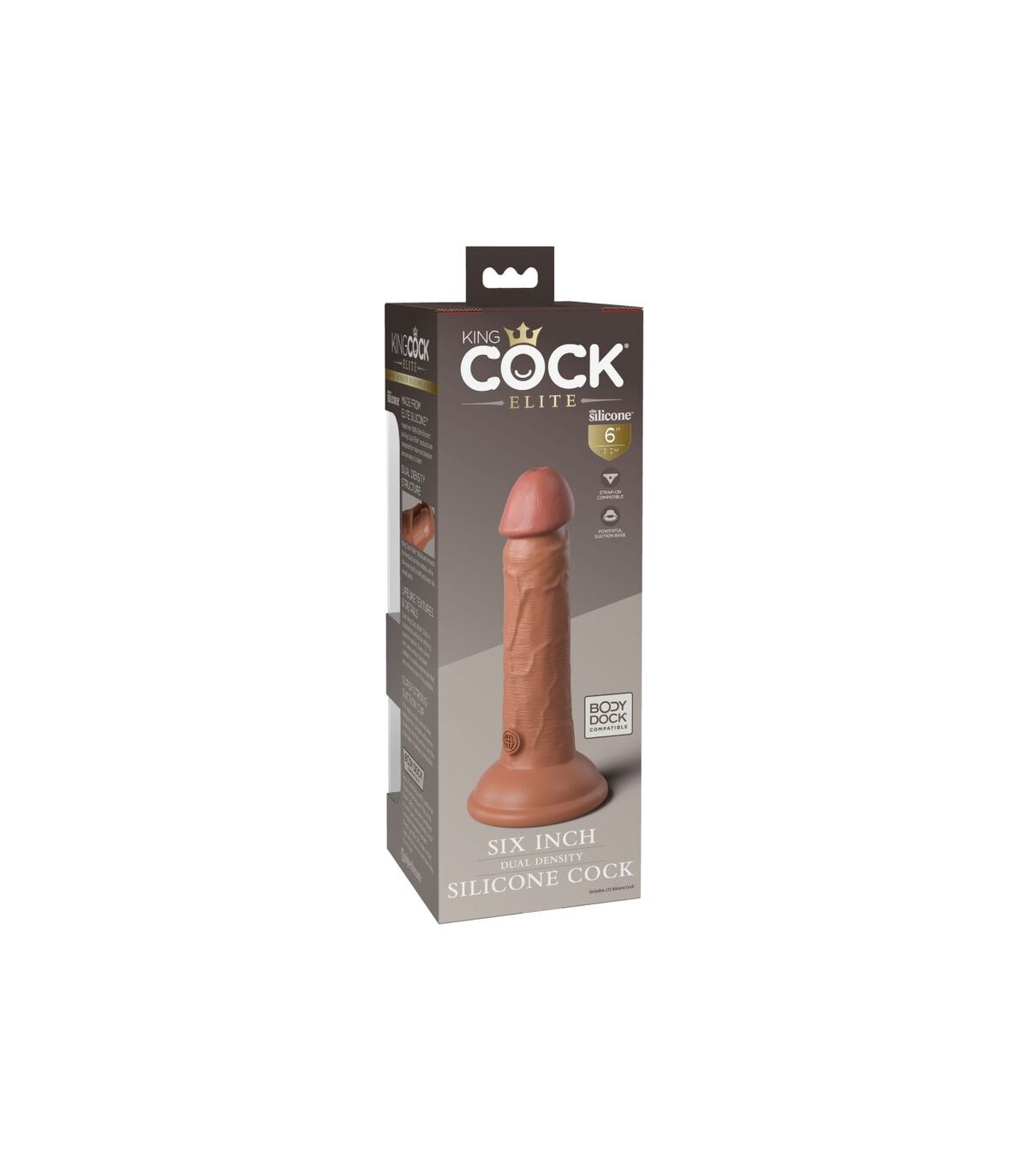 La ventosa sólida ha sido diseñada para un rendimiento superior, brindándole más versatilidad y comodidad durante el uso. La ventosa también hace que este consolador de silicona de doble densidad King Cock Elite sea compatible con Body Dock y arnés si lo desea.