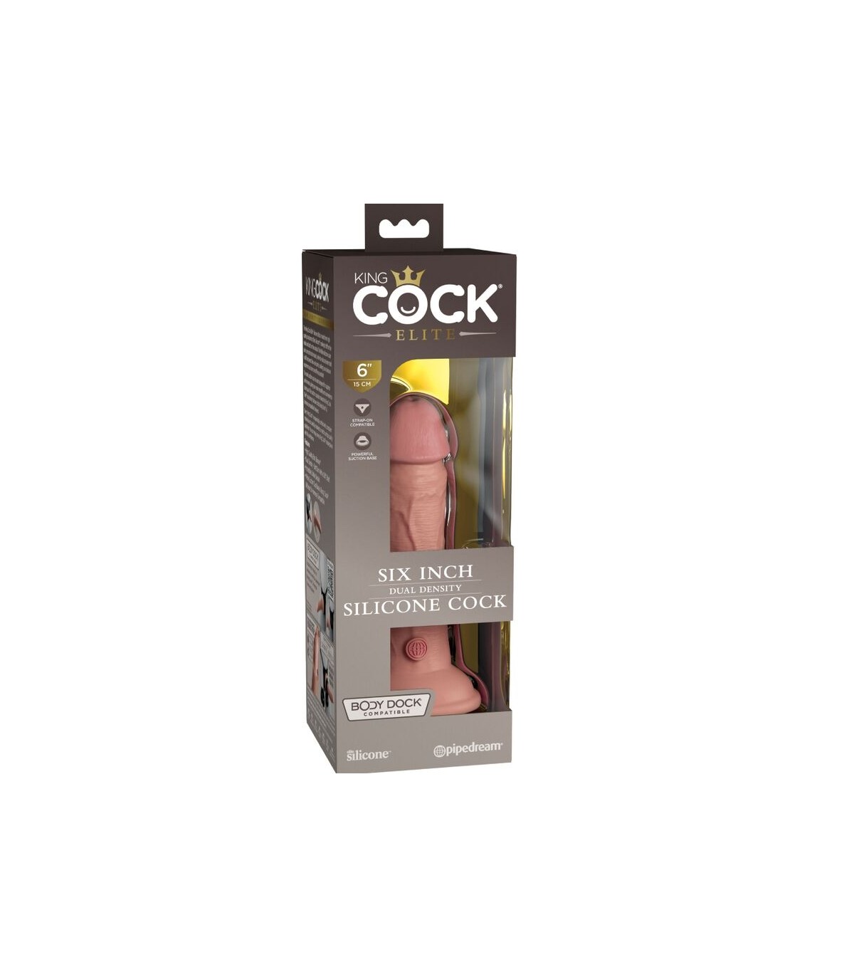 La ventosa sólida ha sido diseñada para un rendimiento superior, brindándole más versatilidad y comodidad durante el uso. La ventosa también hace que este consolador de silicona de doble densidad King Cock Elite sea compatible con Body Dock y arnés si lo desea.