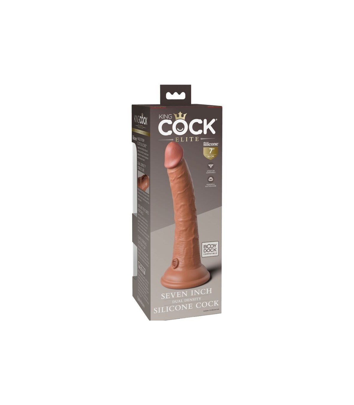 La ventosa sólida ha sido diseñada para un rendimiento superior, brindándole más versatilidad y comodidad durante el uso. La ventosa también hace que este consolador de silicona de doble densidad King Cock Elite sea compatible con Body Dock y arnés si lo desea.