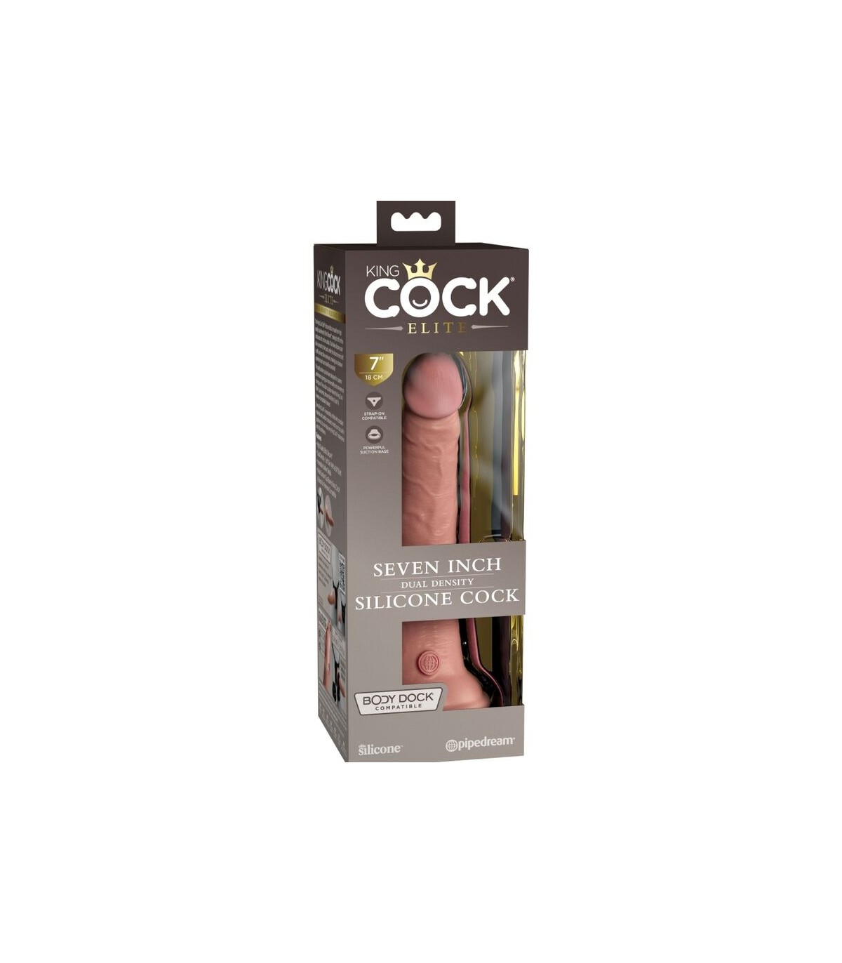 La ventosa sólida ha sido diseñada para un rendimiento superior, brindándole más versatilidad y comodidad durante el uso. La ventosa también hace que este consolador de silicona de doble densidad King Cock Elite sea compatible con Body Dock y arnés si lo desea.