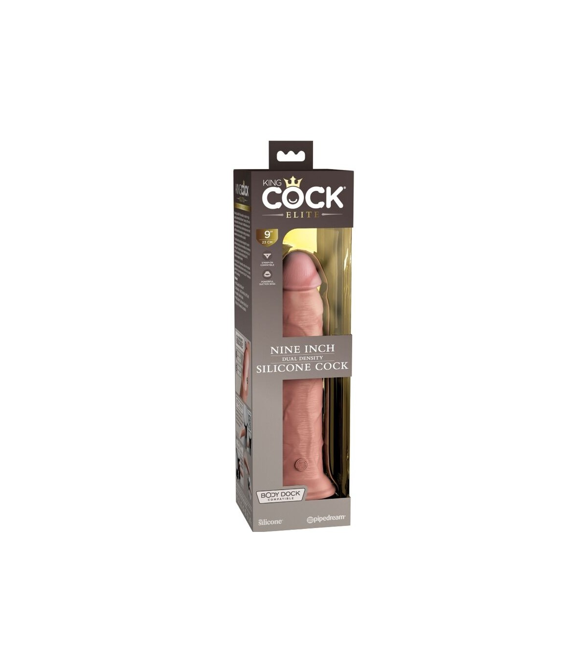 La ventosa sólida ha sido diseñada para un rendimiento superior, brindándole más versatilidad y comodidad durante el uso. La ventosa también hace que este consolador de silicona de doble densidad King Cock Elite sea compatible con Body Dock y arnés si lo desea.
