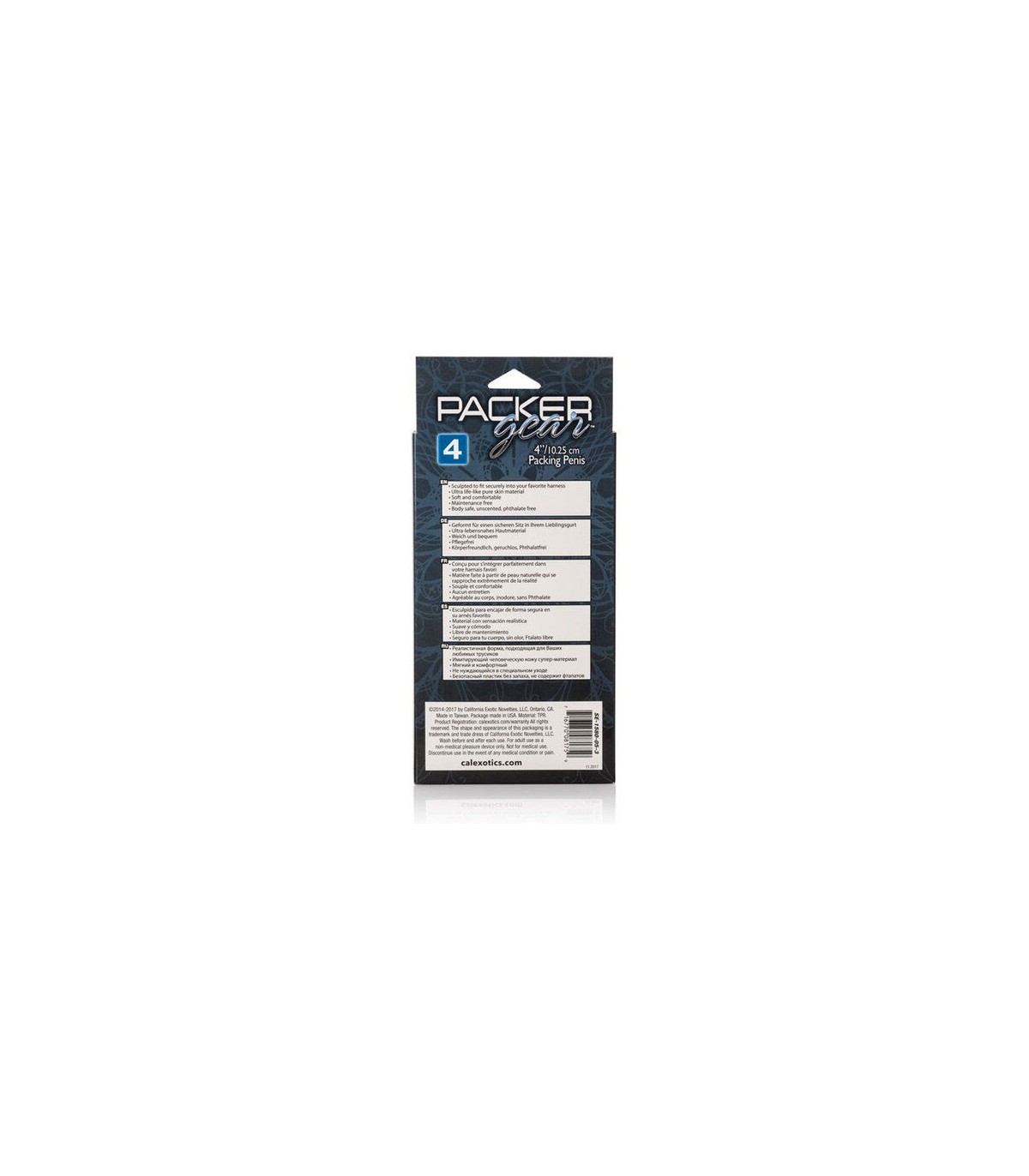 Hecho de material ultra puro, sin fragancia, Pure Skin, el esculpido Gear Packing Penis mide una longitud natural, presenta pliegues de piel realistas y un escroto texturizado.