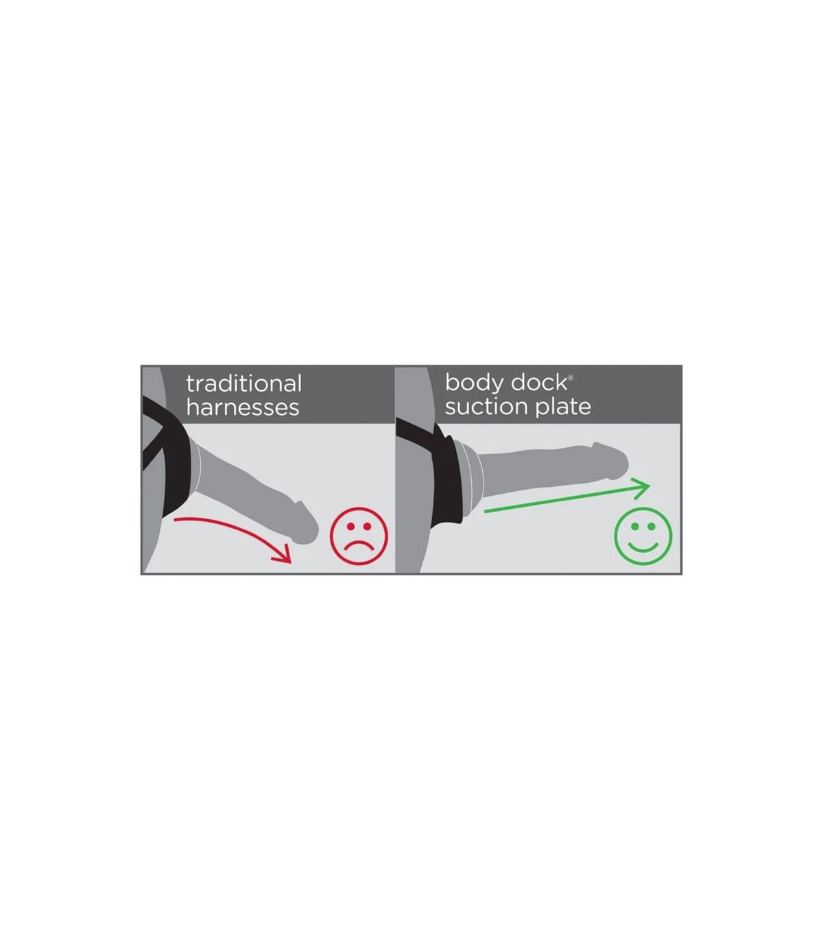¡El sistema de arnés universal patentado Body Dock es el Body Dock más fácil y cómodo que hemos fabricado! Es tan simple como conectar la ventosa de este consolador Dillio de silicona platino a la placa de acoplamiento de silicona. Sin anillos. Sin instantáneas. Sin complicaciones. Lo mejor de todo es que funciona con la mayoría de los consoladores del mercado actual, incluidos algunos que ya tienes.