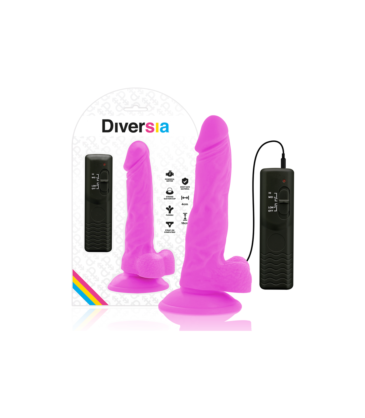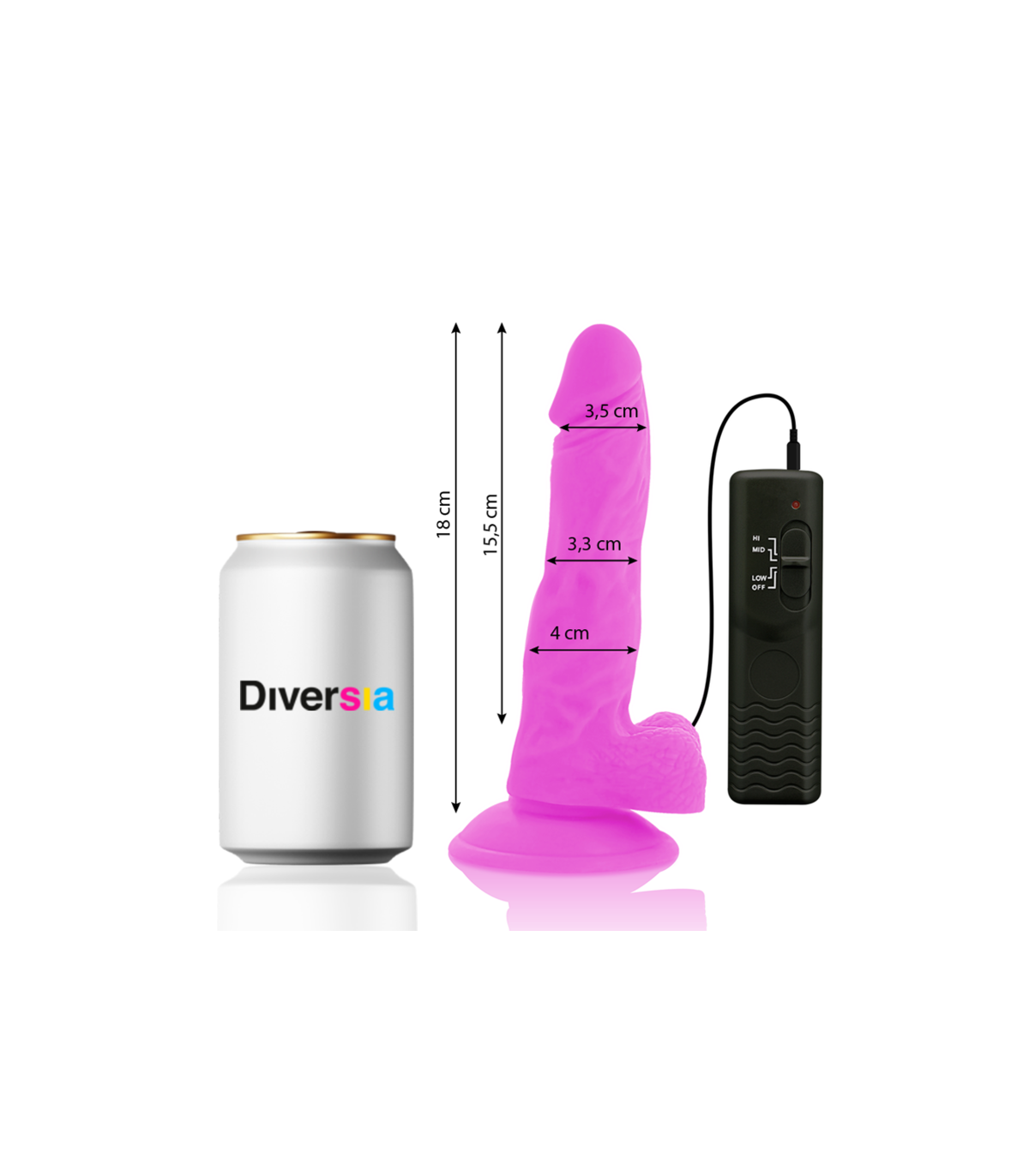 DIVERSIA - DILDO REALÍSTICO FLEXIBLE CON VIBRACIÓN LILA 18 CM -O- 4 CM