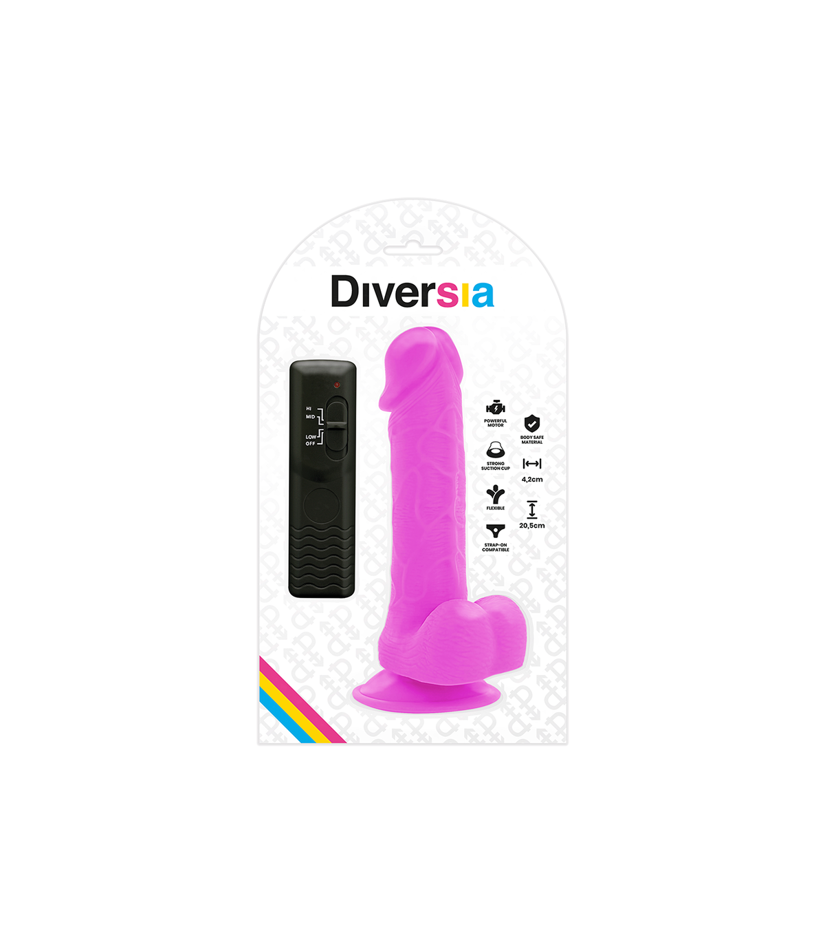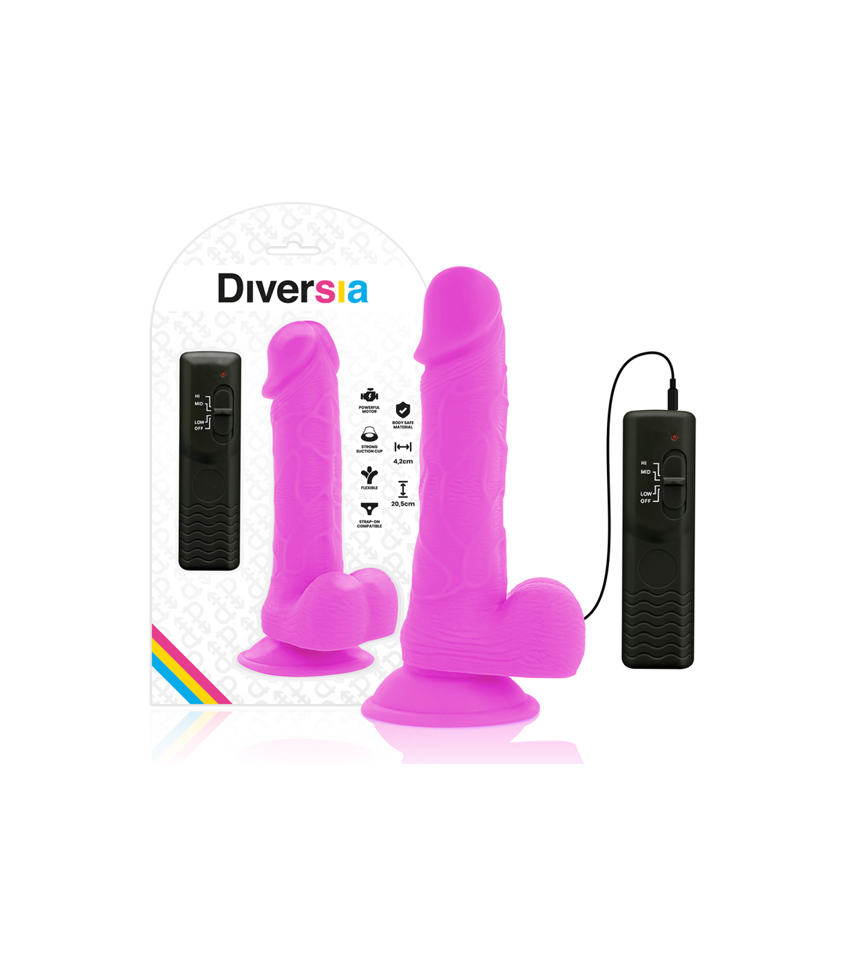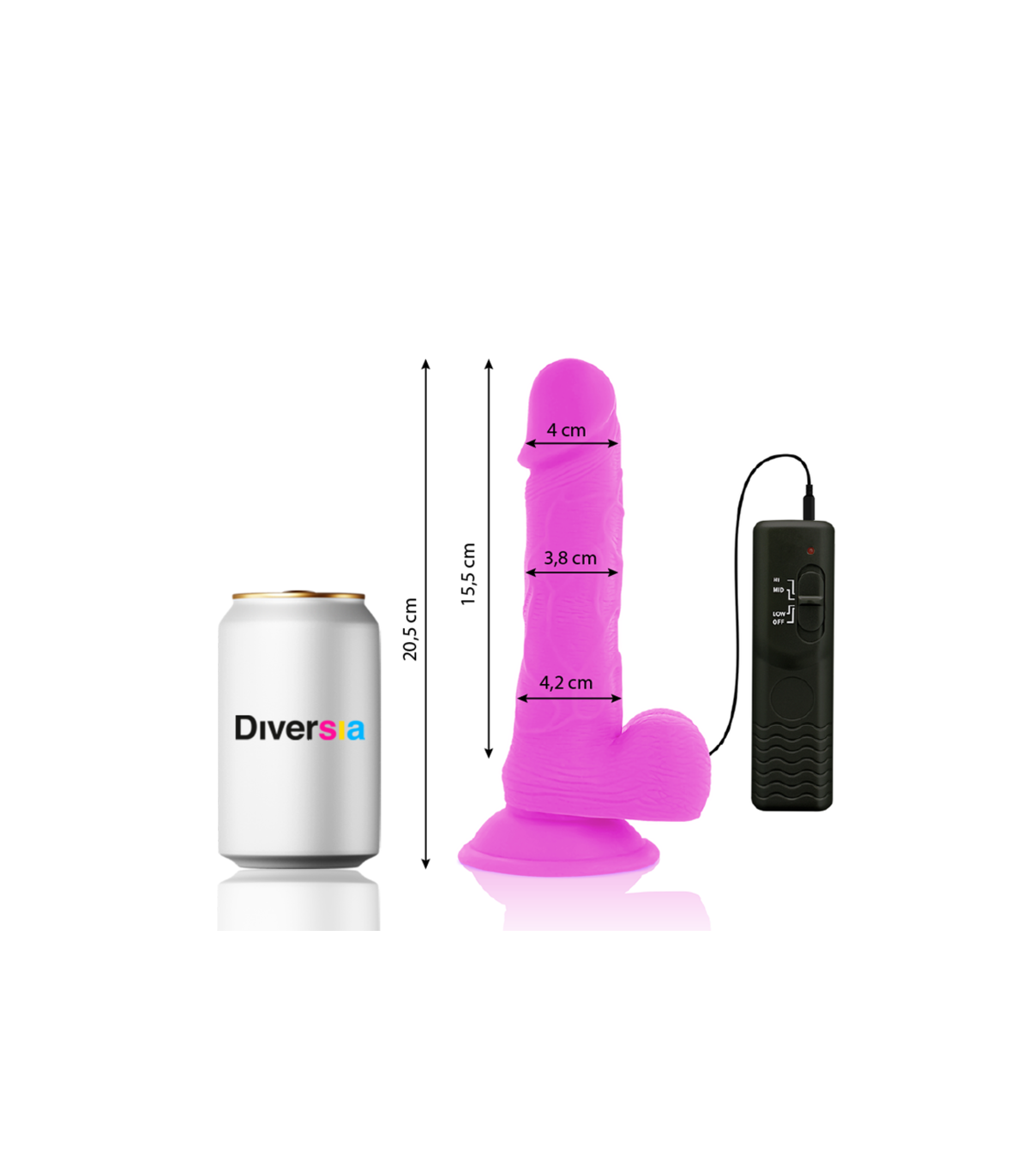 DIVERSIA - DILDO REALÍSTICO FLEXIBLE CON VIBRACIÓN LILA 20.5 CM -O- 4.2 CM