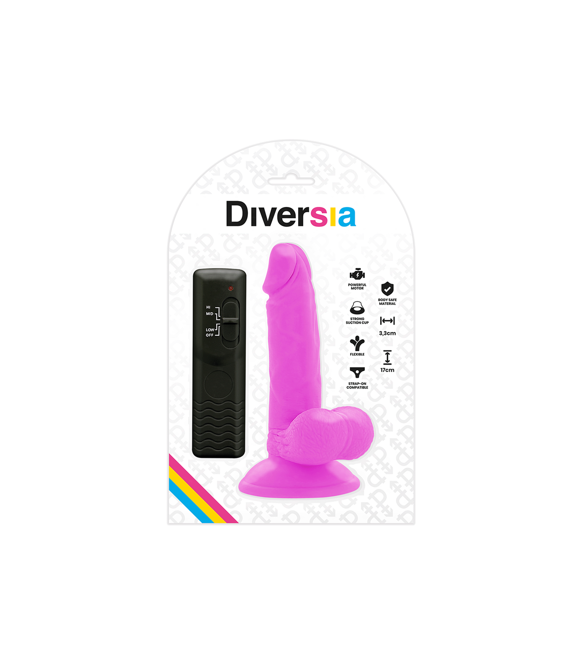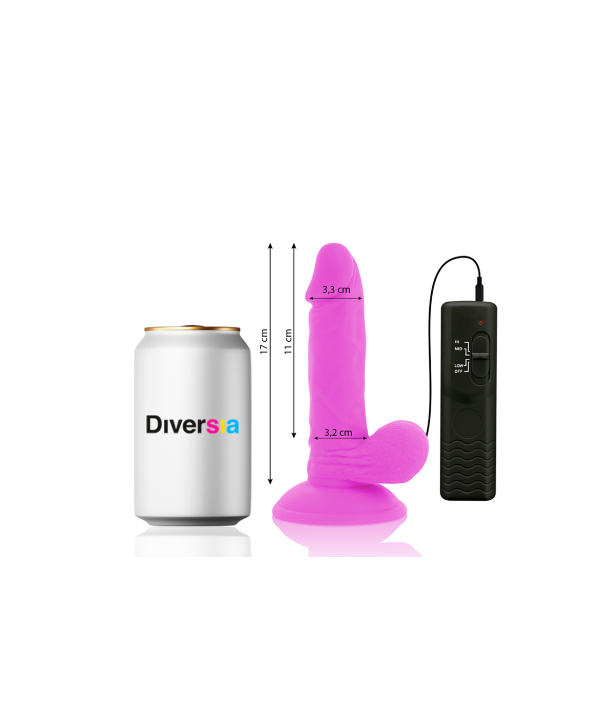 DIVERSIA - DILDO REALÍSTICO FLEXIBLE CON VIBRACIÓN MORADO 17 CM -O- 3.3 CM