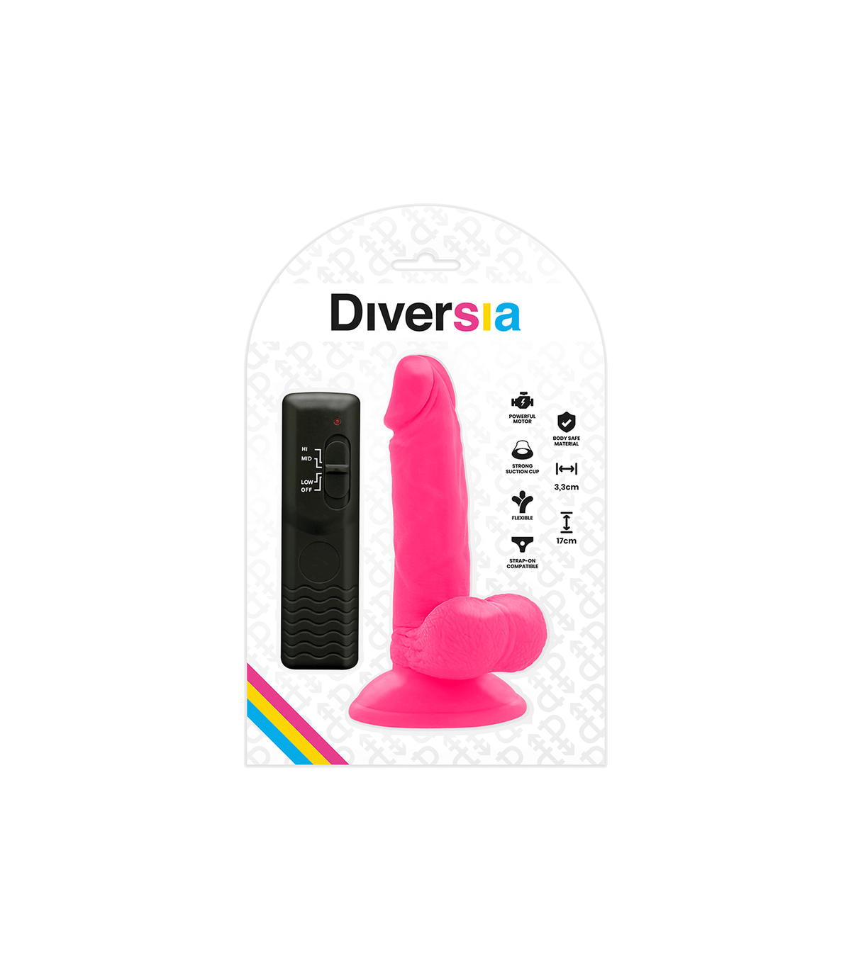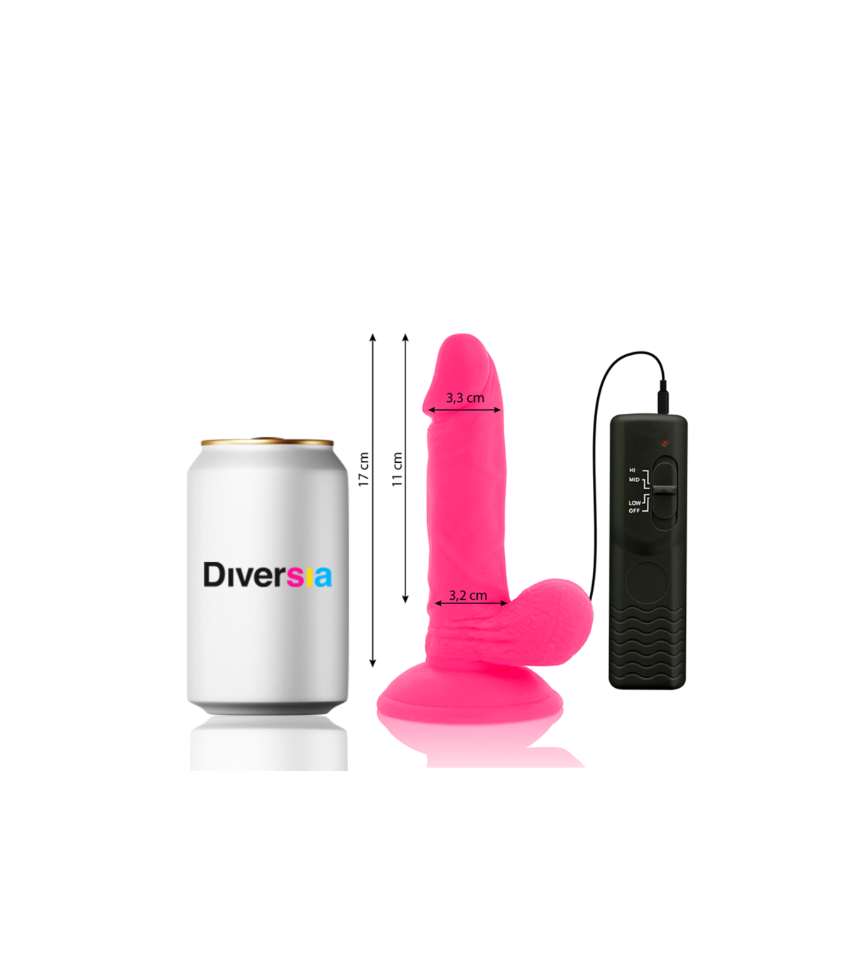 DIVERSIA - DILDO REALÍSTICO FLEXIBLE CON VIBRACIÓN ROSA 17 CM -O- 3.3 CM