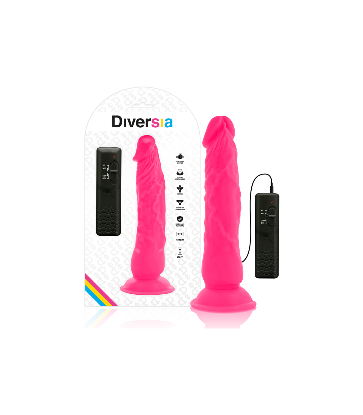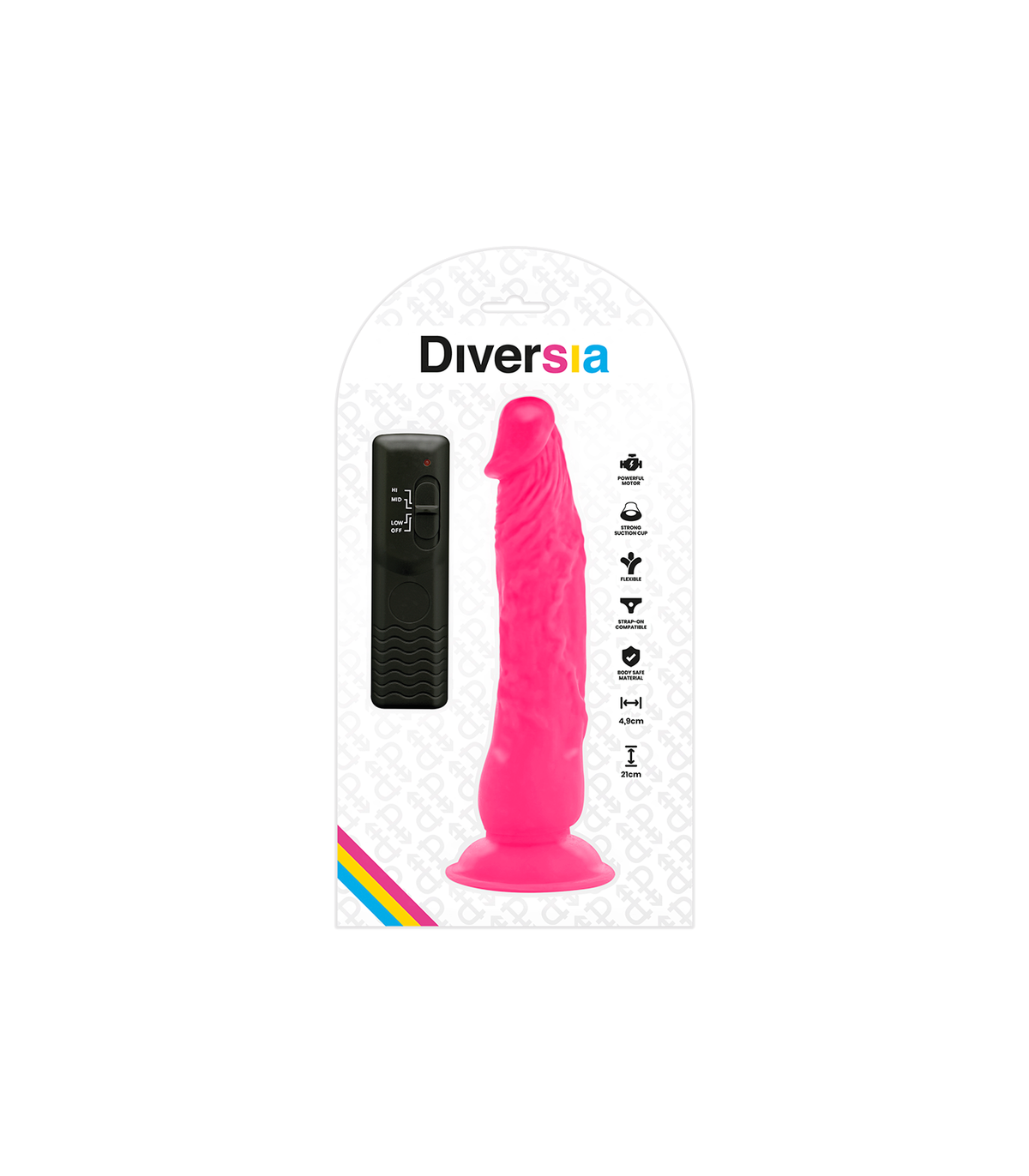 DIVERSIA - DILDO REALÍSTICO FLEXIBLE CON VIBRACIÓN ROSA 21 CM -O- 4.9 CM