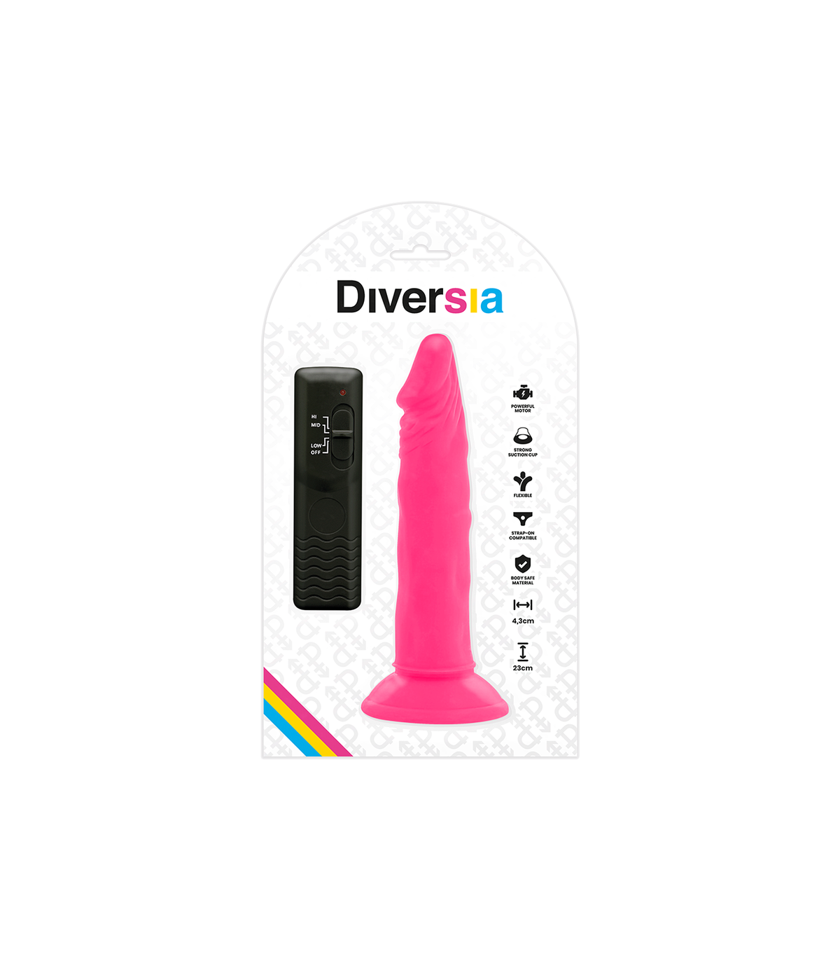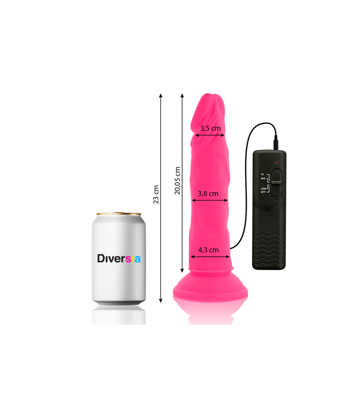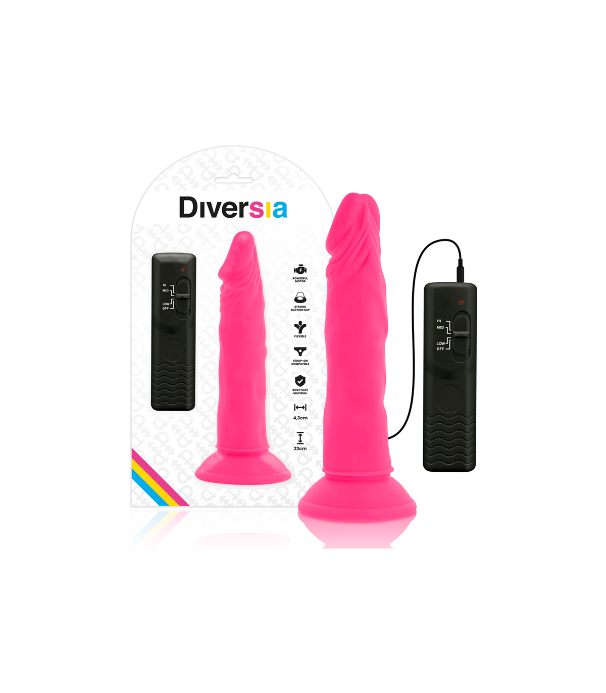 DIVERSIA - DILDO REALÍSTICO FLEXIBLE CON VIBRACIÓN ROSA 23 CM -O- 4.3 CM