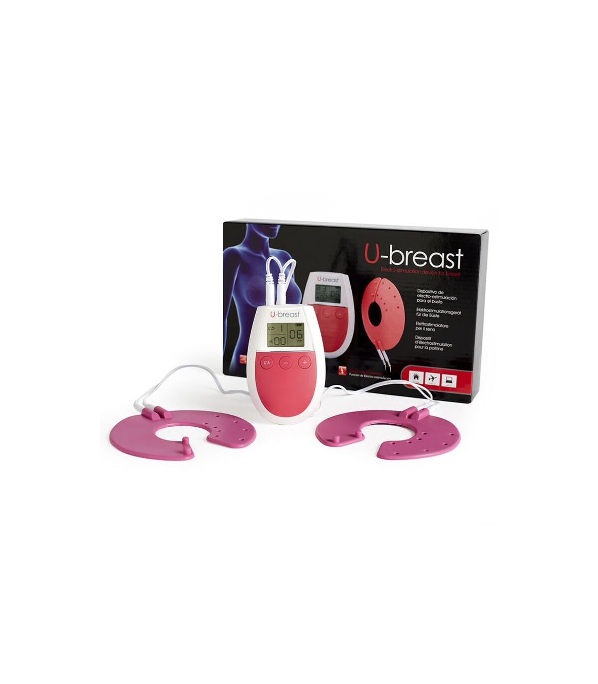U-breast es un dispositivo electrónico basado en electroestimulación muscular para aumentar los senos de forma natural y sin cirugía. Impulsa el crecimiento progresivo de las mamas tonificándolas y reafirmándolas para obtener un pecho perfecto. Sus masajes con electroestimulación mantienen fuertes y sanos los ligamentos del pecho haciendo que éste mejore su apariencia.