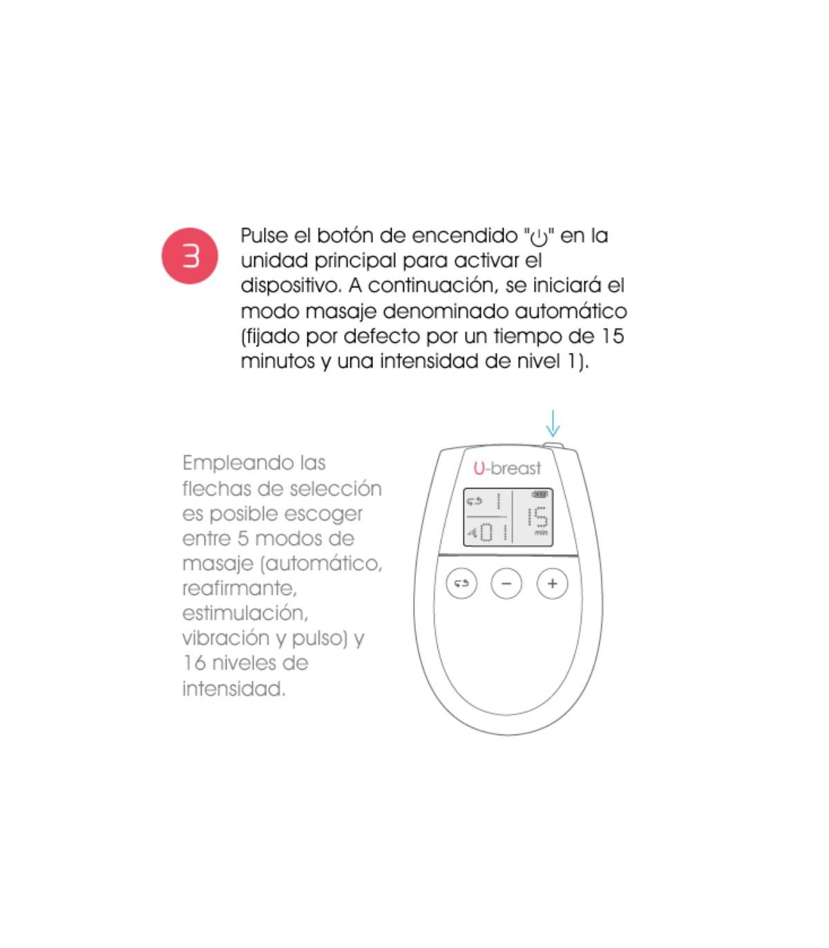 U-breast se encarga de estimular la circulación del pecho gracias a sus dos unidades electromagnéticas que reactivan la renovación celular y la producción de hormonas mediante masajes para conseguir un aumento del pecho y mejor firmeza. La intensidad de la electroestimulación penetra por la piel mejorando la circulación sanguínea a través de 5 modos diferentes y 16 niveles de intensidad con los que aumentarás tu pecho sin moverte de casa y de forma totalmente natural. Todo el proceso de estimulación va a acompañado de U-breast Gel, que ayuda a que las ondas penetren con mayor eficacia dentro de la piel durante la transmisión de ondas.