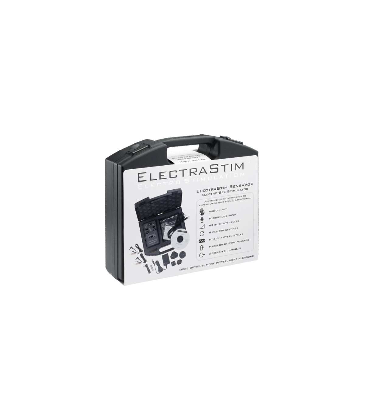 ElectraStim SensaVox es uno de nuestros estimuladores más avanzados y potentes, repleto de características tentadoras y en un diseño elegante y de alta gama. Si quieres una caja de potencia de estimulación electrónica de alto rendimiento que ofrezca más formas de jugar, te encantará esta máquina sexual eléctrica de dos canales.