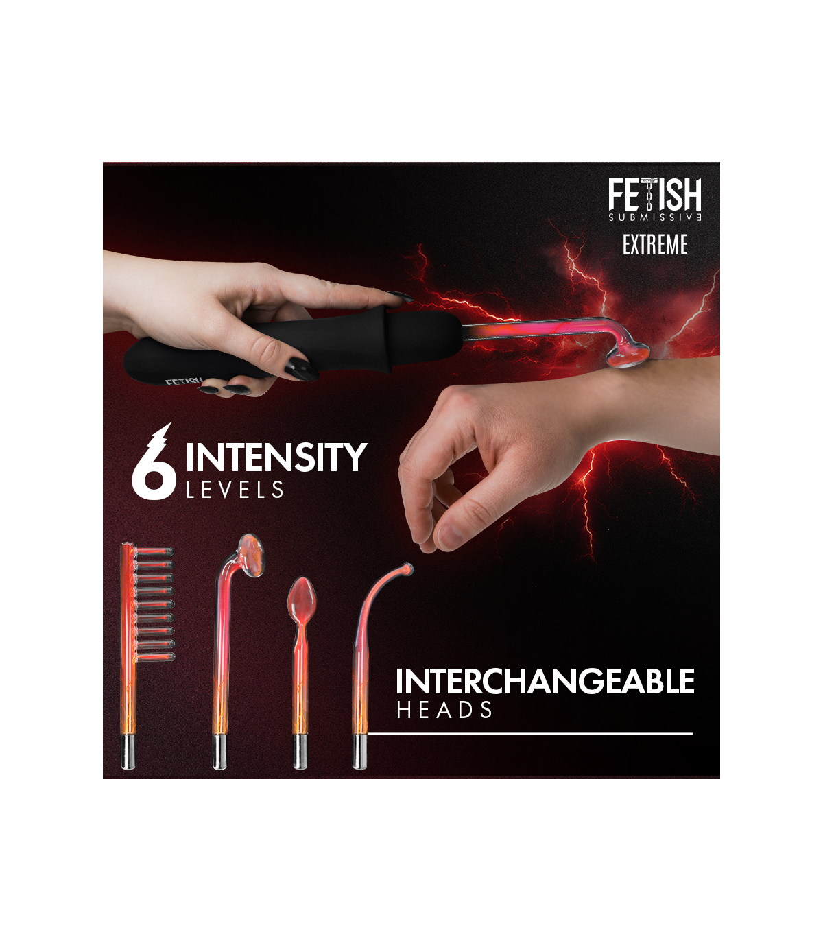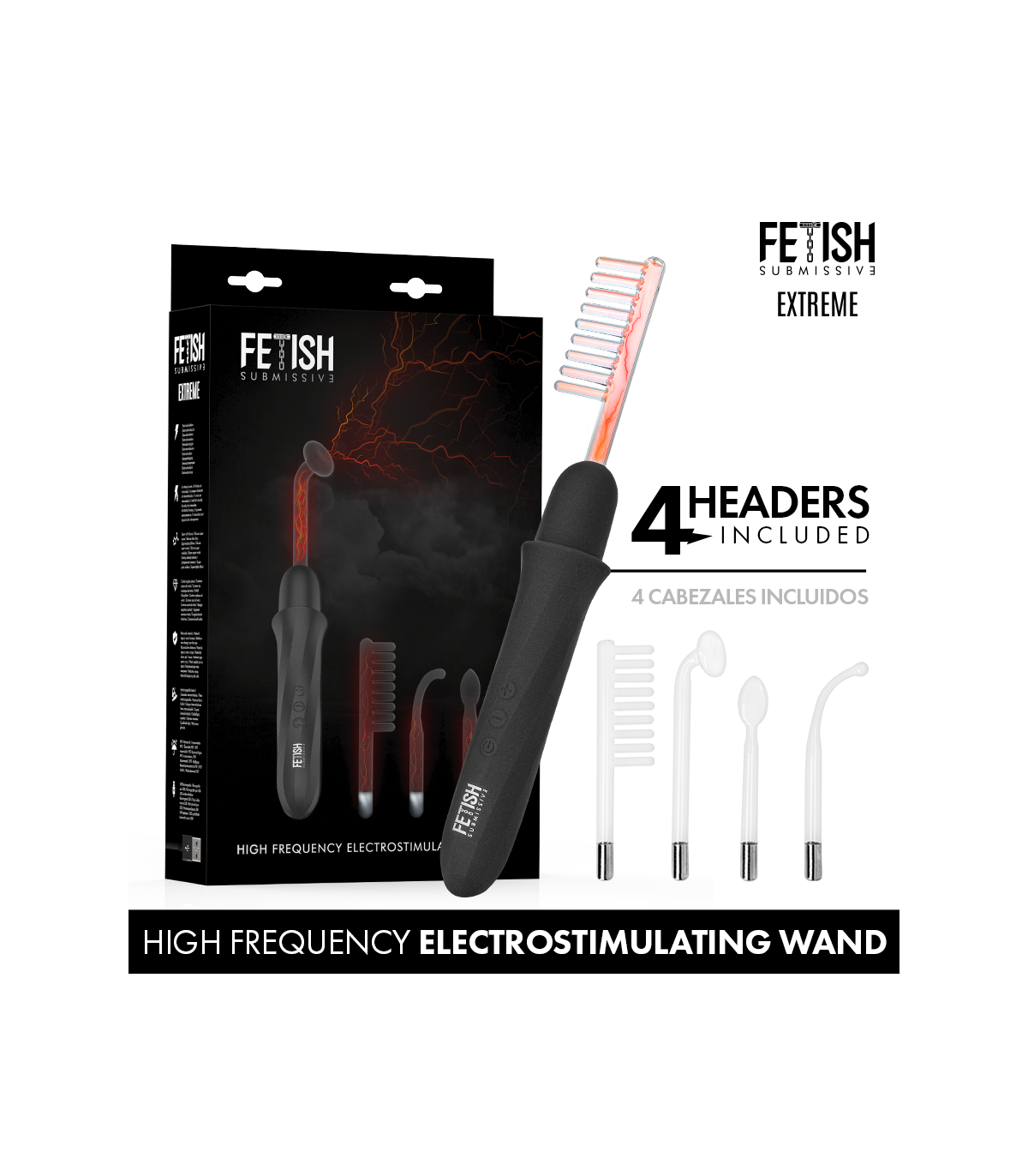 Fabricado con silicona súper suave y materiales seguros para el cuerpo, este dispositivo garantiza una experiencia placentera y confortable. Su diseño elegante incluye piezas de cristal que aportan un toque de lujo y sofisticación, ideal para los amantes del estilo fetish y los juegos de dominación y sumisión. El Fetish Submissive - Vibrador Wand de Electroestimulación incluye cuatro cabezales intercambiables, cada uno diseñado para ofrecer diferentes sensaciones y puntos de contacto. Cambia de textura y forma para explorar nuevas maneras de estimular el cuerpo y descubrir tus límites más placenteros.