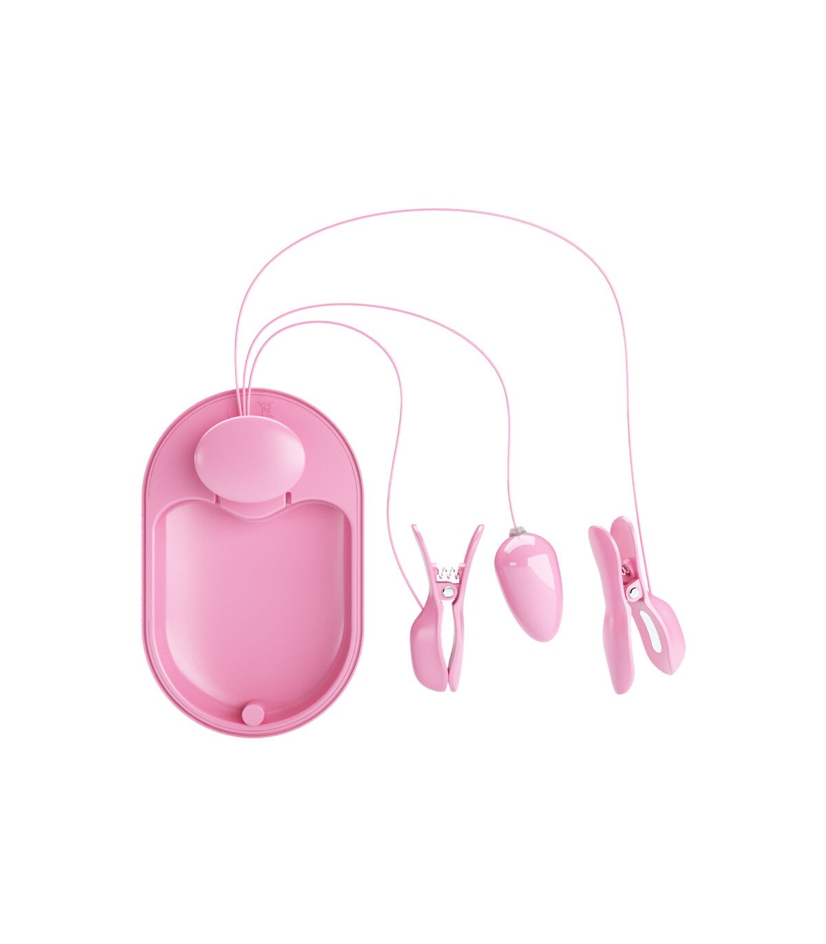 ¡Estas fabulosas pinzas son ideales para los amantes de la estimulación del pezón! Con este sistema compacto obtendrás pinzas para pezones, una increíble electroestimulación de pezones y una potente vibración, ¡todo de una vez! Las puntas están acolchadas para total comodidad y agarre. ¡Sujételos con fuerza, aumente las vibraciones y disfrute de una estimulación alucinante del pezón!