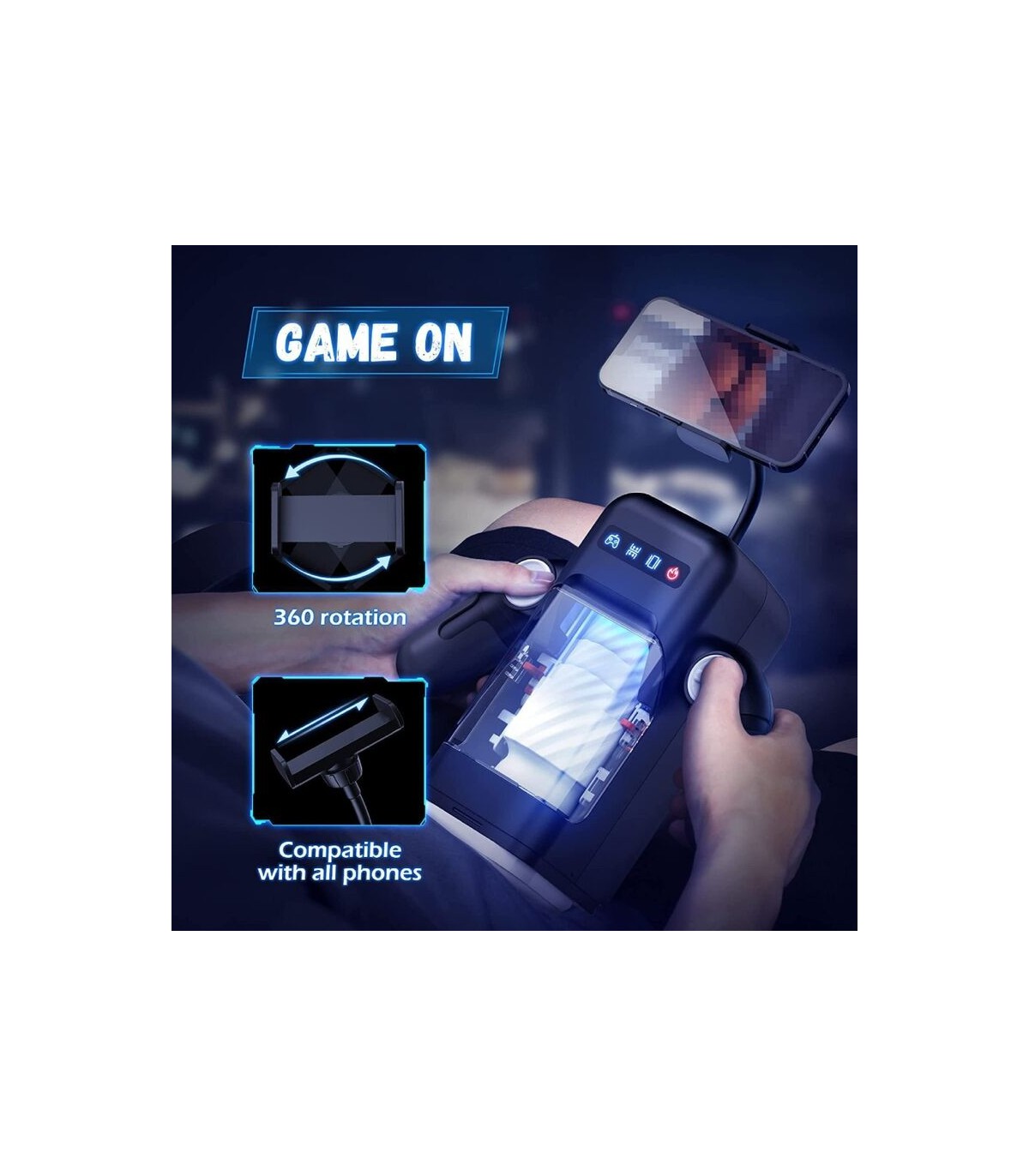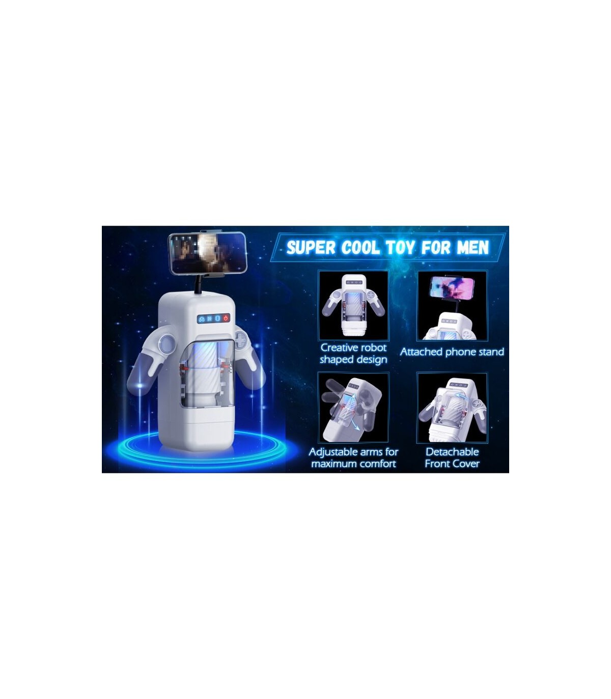 - Soporte para teléfono para liberar tus manos: Este juguete automático para el placer sexual de los hombres viene completo con un soporte para teléfono para liberar tus manos. Eche un vistazo a la acción con la ventana transparente y encuentre su ángulo favorito con los brazos ajustables. Incluso puede abrir su sitio web favorito y realmente se sentirá como en el cielo; Lo único que quieres es ir más despacio y disfrutar más.