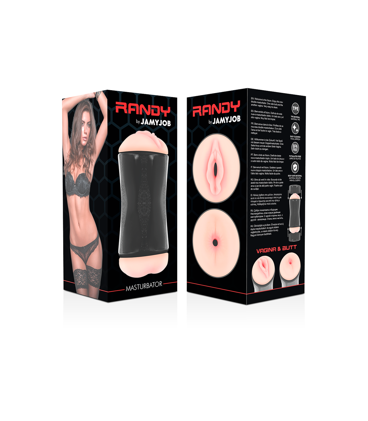 Con este masturbador de doble entrada, conseguirás plenamente nuestro placentero objetivo, ya que su manga extraible de fácil limpieza, se adapta a la temperatura corporal y su canal interior está texturizado convirtiendo la experiencia en 100% realista, como si de sexo real se tratara. Tan solo tendrás que aplicar un poco de lubricante base agua, (Jamyjob recomienda el uso de los lubricantes Waterfeel para una óptima lubricación) y elegir qué te apetece si una deliciosa vagina o un exquisito ano, la decisión es tuya.