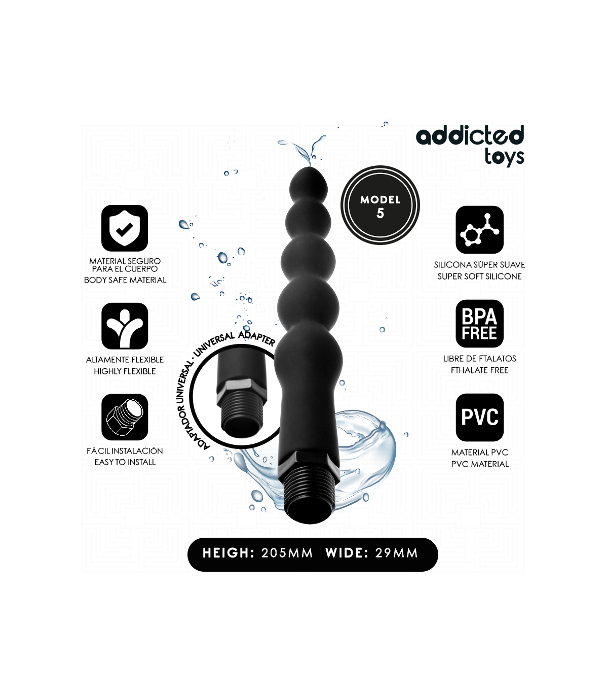 Explora sin límites con la preparación adecuada. La higiene íntima es clave para disfrutar al máximo tus experiencias anales, y con el limpiador anal de Addicted Toys, conseguirás una limpieza profunda, segura y sin complicaciones. Este Modelo 5, perteneciente a una gama de 6 diseños distintos, está diseñado para ofrecer comodidad, suavidad y eficacia como parte de tu rutina íntima diaria o previa al juego. Confeccionado con materiales de primera calidad como PVC flexible y silicona súper suave, este accesorio es completamente seguro para el cuerpo y libre de ftalatos, cumpliendo con altos estándares de higiene. Gracias a su adaptador universal, es compatible con la mayoría de sistemas de ducha, facilitando su instalación en segundos y asegurando un uso práctico y sin contratiempos.
