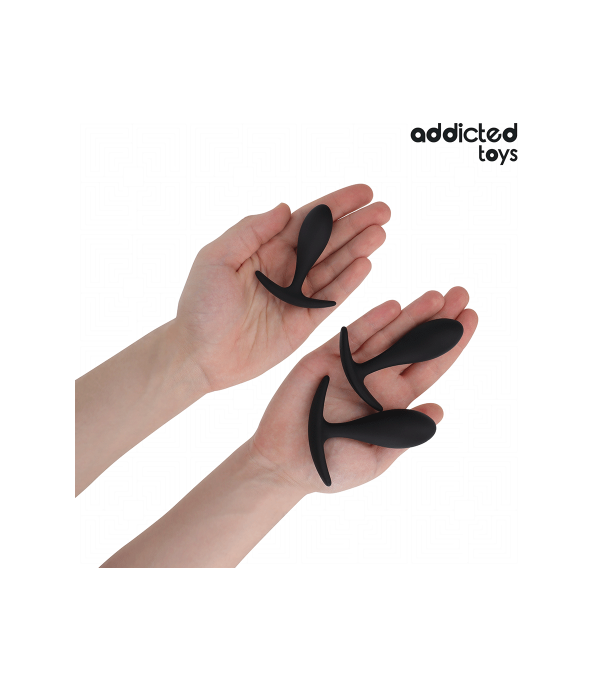 Este set incluye tres plugs anales de diferentes tamaños, permitiendo una adaptación gradual para usuarios de distintos niveles, desde principiantes hasta personas con más experiencia. Cada plug tiene un diseño liso y curvado, lo que facilita una inserción suave y cómoda. La base en forma de ancla garantiza seguridad y comodidad, evitando una inserción excesiva y permitiendo una fácil extracción.