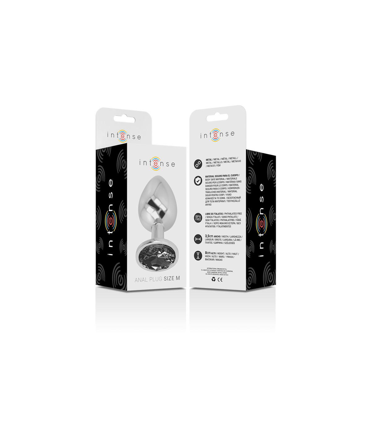 INTENSE - PLUG ANAL METAL ALUMINIO CON CRISTAL NEGRO TALLA M