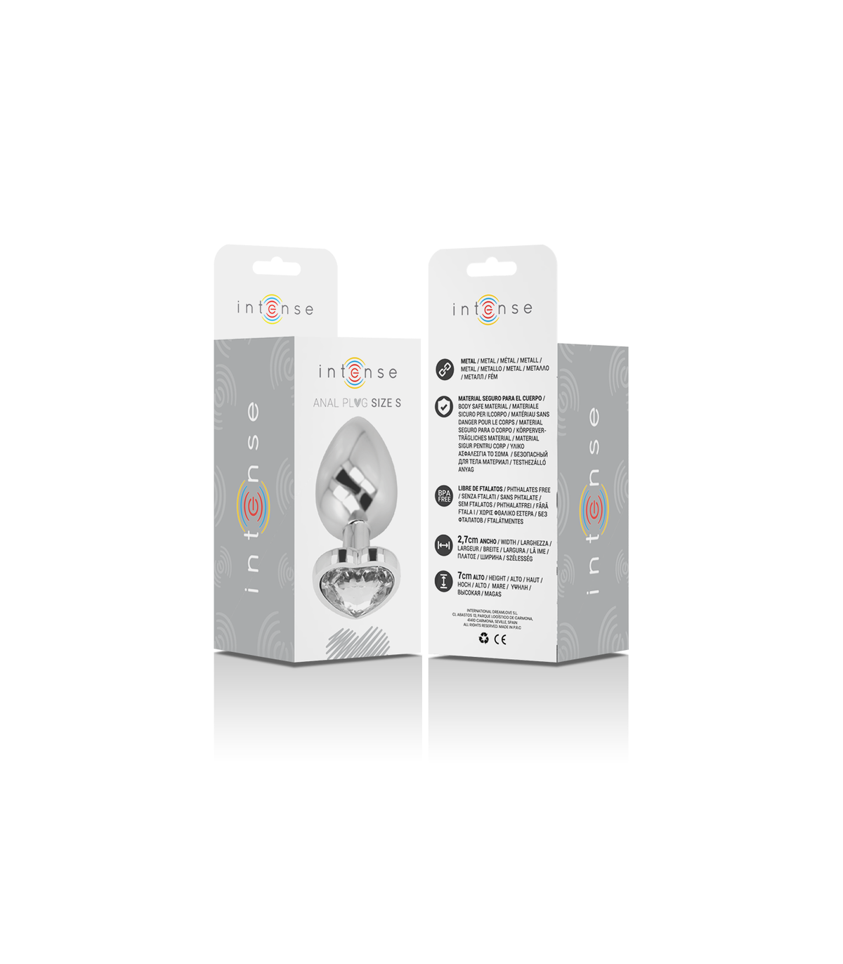 Sumérgete en un mundo de glamuroso placer con el plug anal con joya de diamante de INTENSE. Este plug anal de alta calidad está hecho de metal totalmente libre de Phalatos testado y suave y está adornado con una piedra brillante. Disfruta del lujoso diseño que convierte tus aventuras anales en una experiencia glamorosa. Con su agradable tamaño, su forma firme y manejable, este plug ofrece una estimulación anal elegante y cómoda.Ç