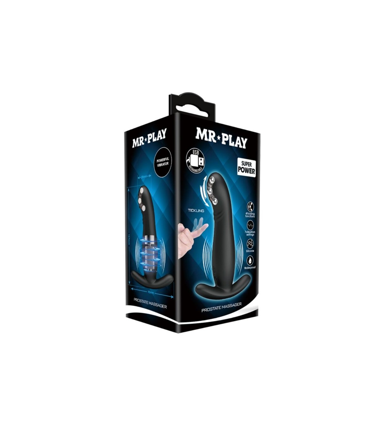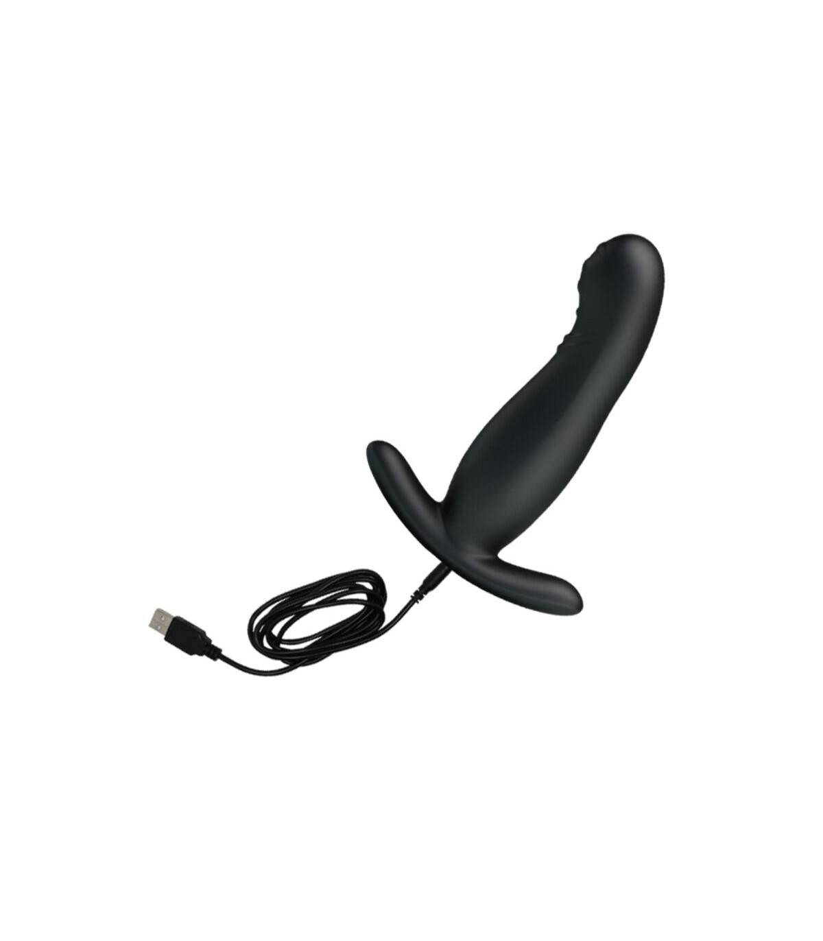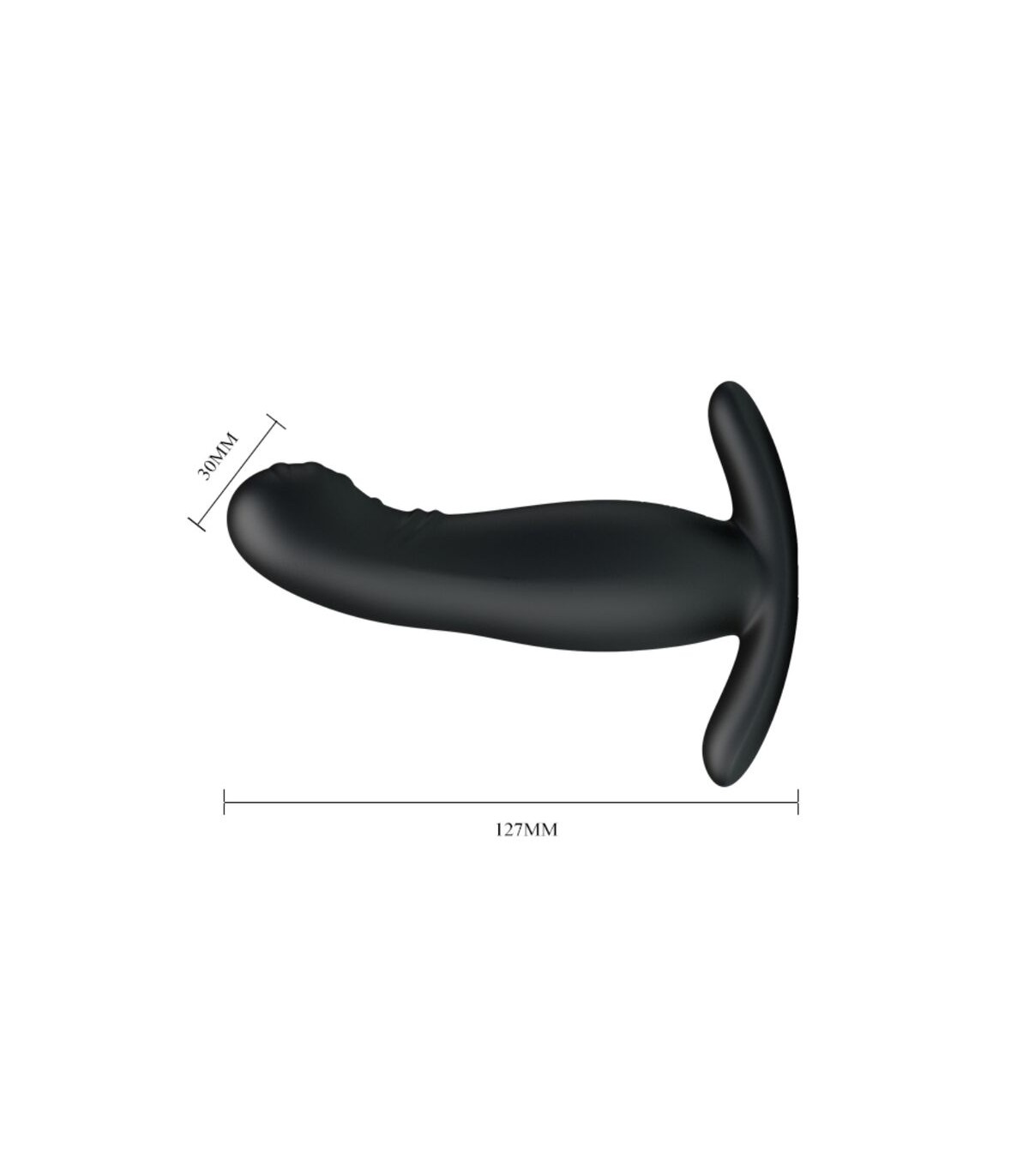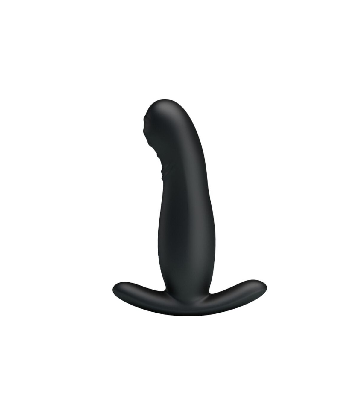 Este masajeador de próstata liso y negro está hecho de material seguro para la piel.