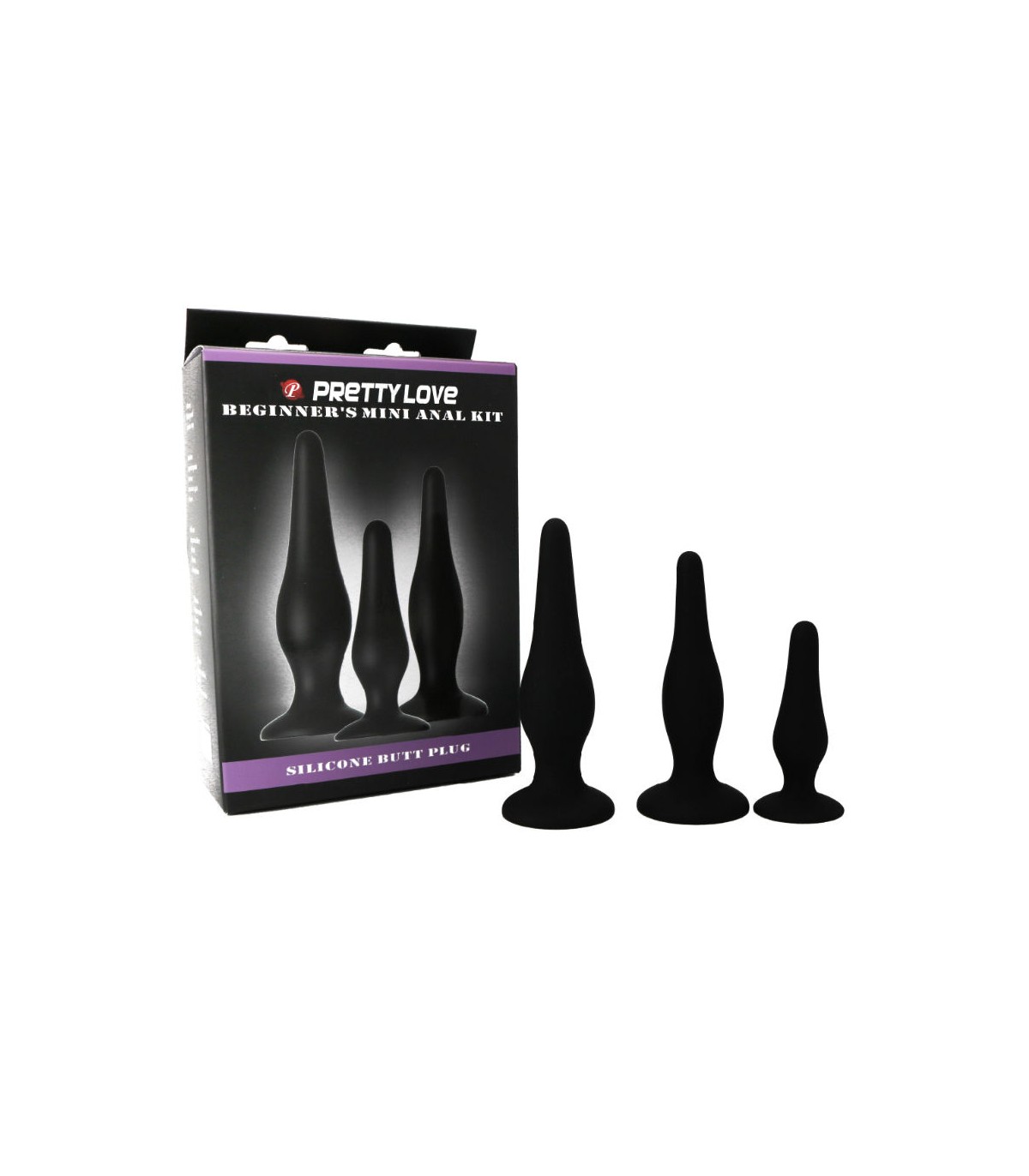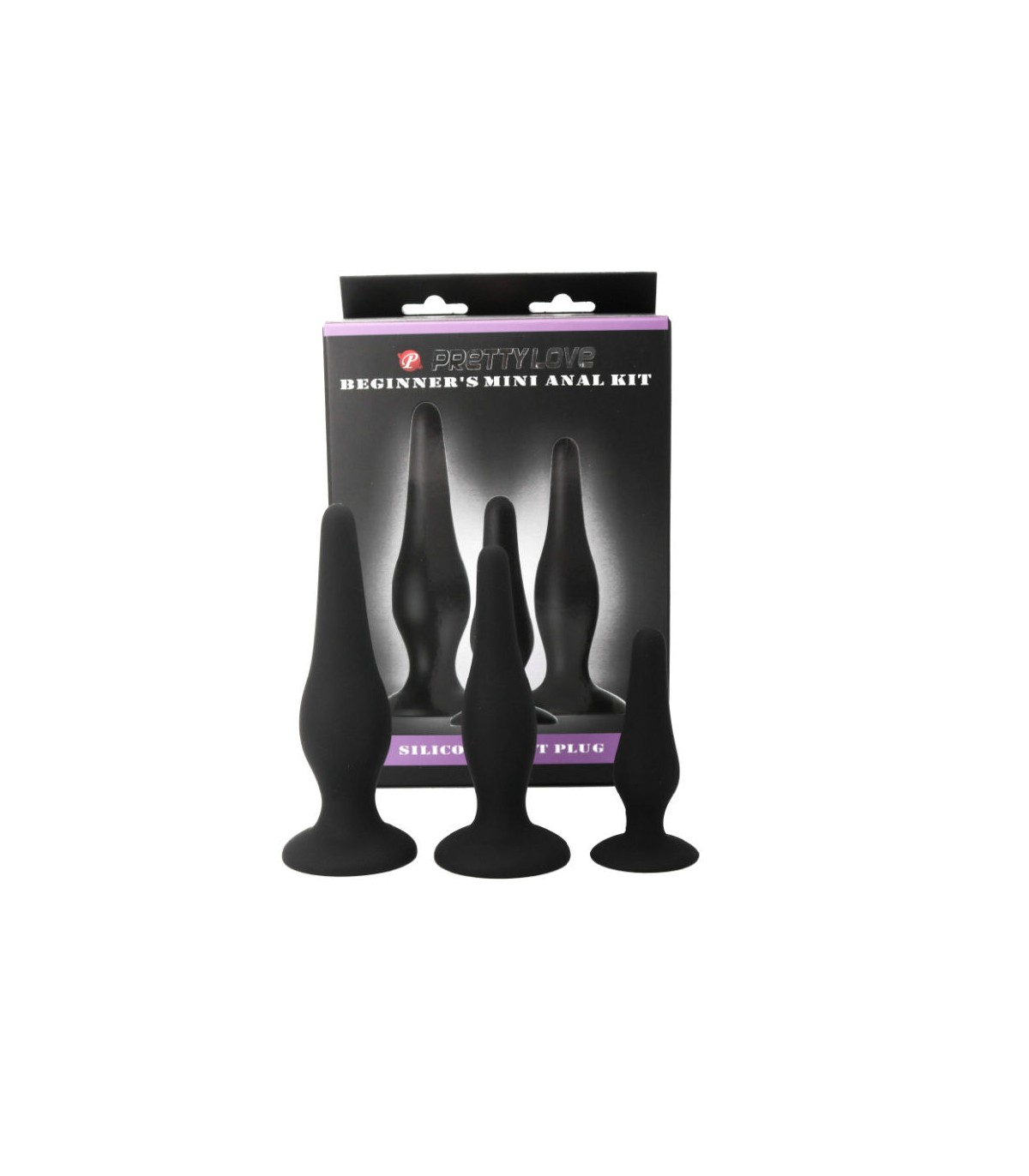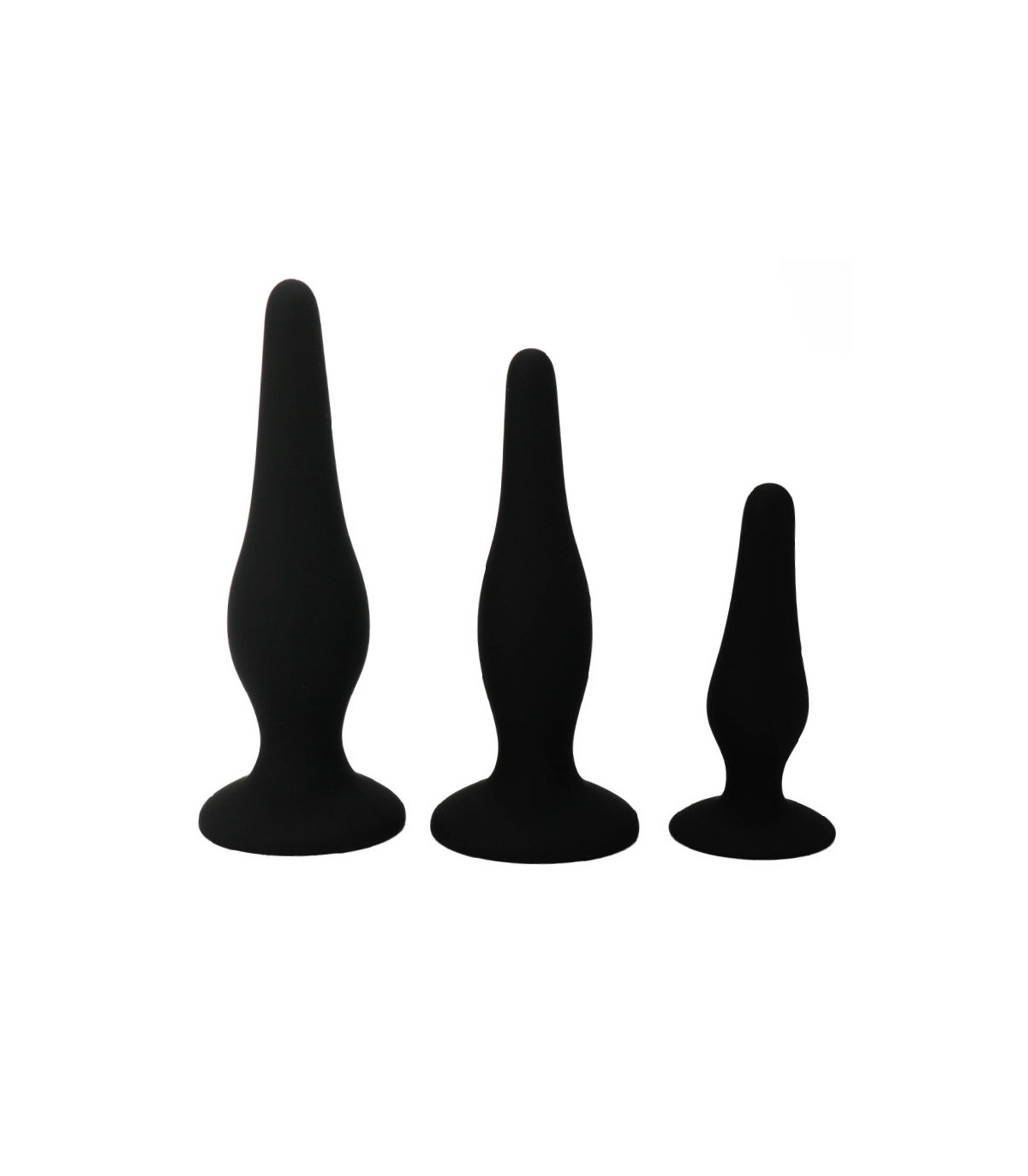 ¿Te gustaría iniciarte en el maravilloso mundo de la estimulación anal? Con este kit de iniciación para principiantes podrás hacerlo de forma cómoda y segura. Son 3 plugs de silicona de alta calidad con las medidas perfectas para iniciarse y hacerlo adecuadamente. Empieza por el mas pequeño y delgado y sube progesivamente de nivel hasta llegar al mas grande.