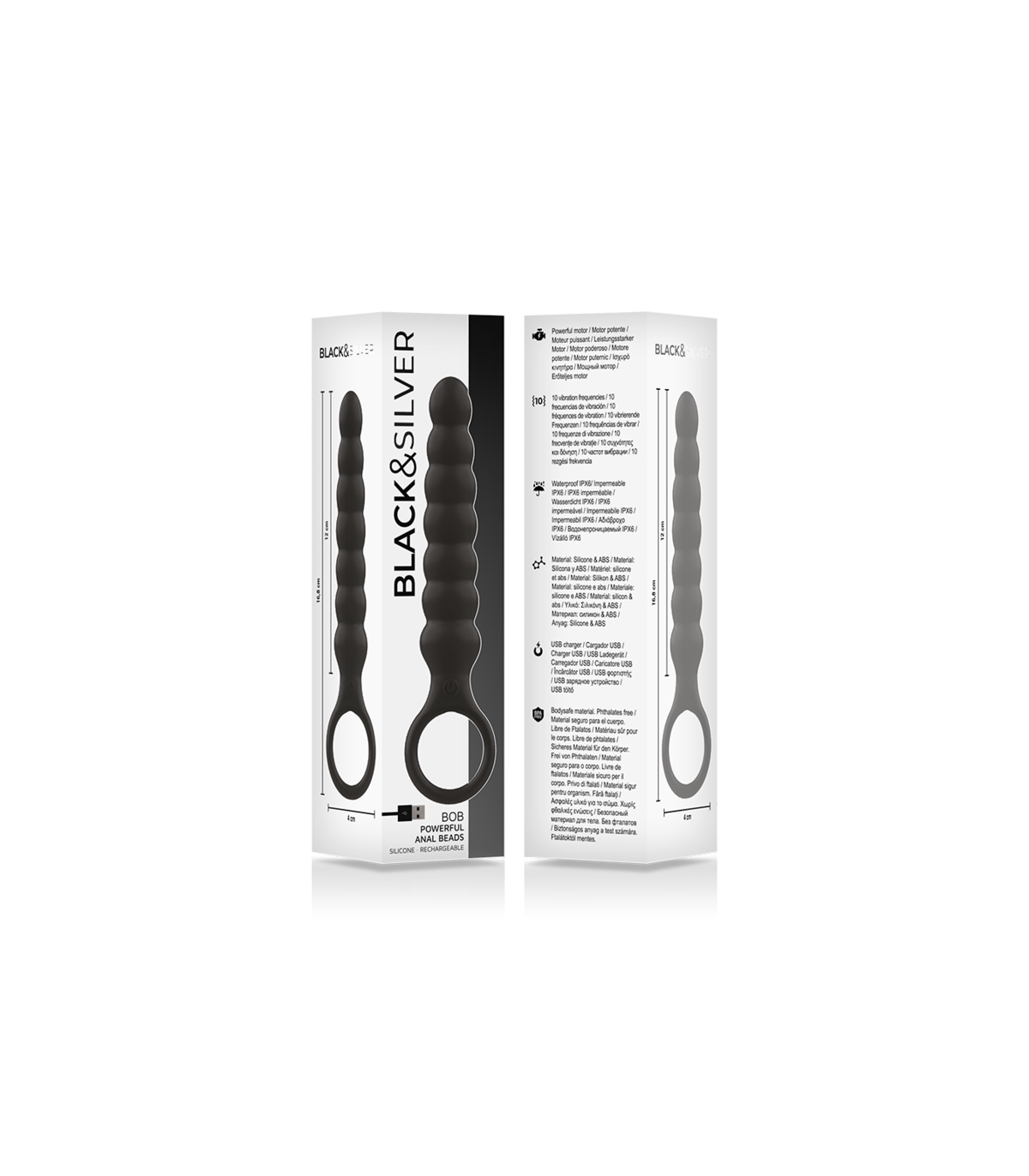 Con un cargador por USB, una autonomía de 3 h y 10 modos de vibraciones, estás preparado/a para una sesión de estimulación súper placentera. Llévate el plug anal Black&Silver™ Bob™donde quieras y disfruta de la experiencia vibradora que ofrece el juguete de Black&Silver™