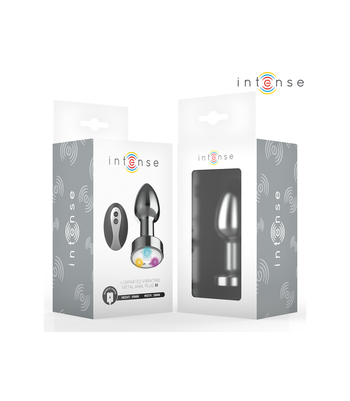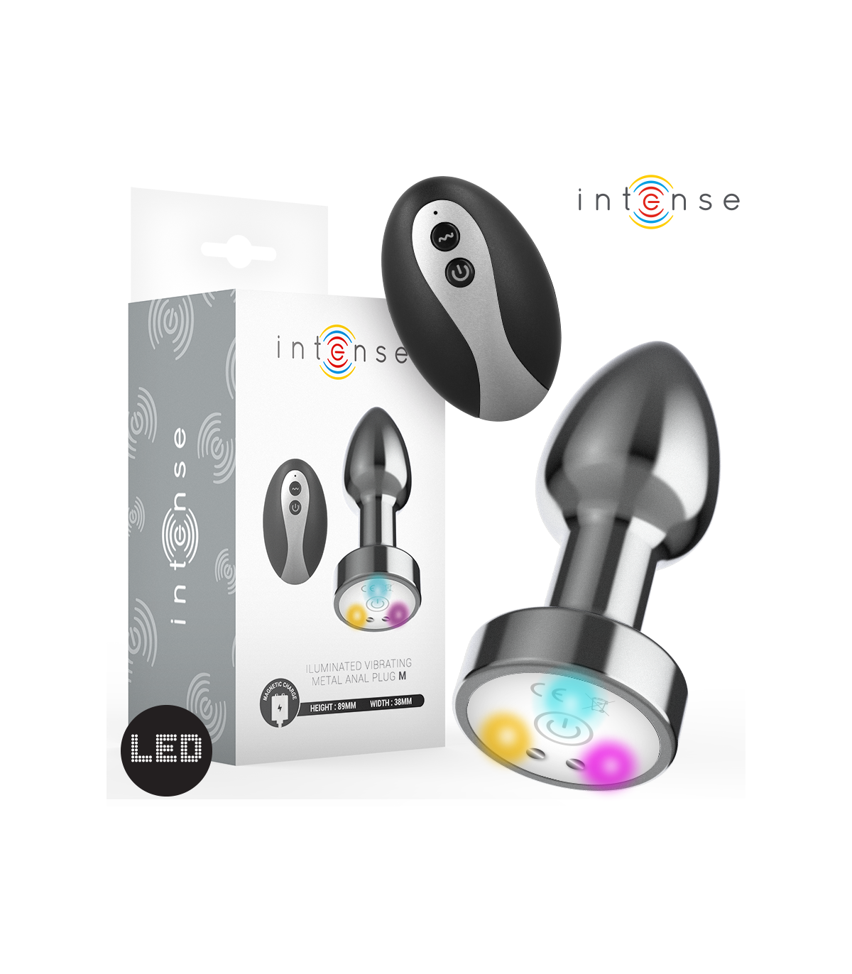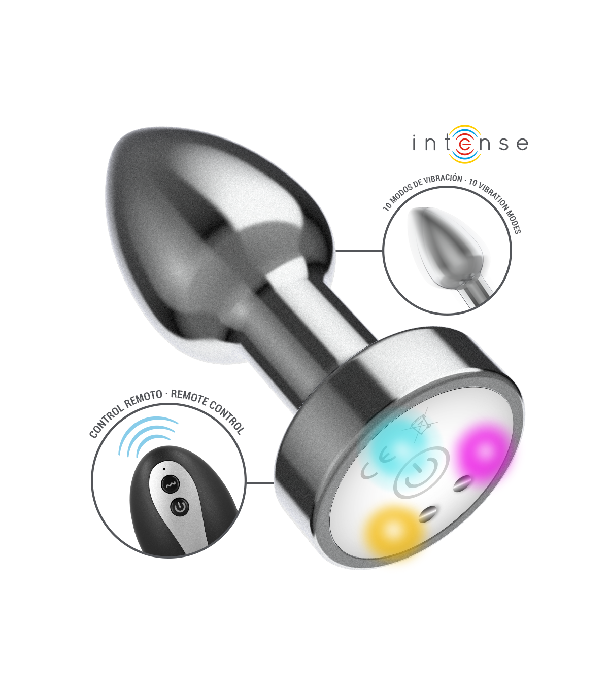 INTENSE - PLUG ANAL TALLA M DE METAL VIBRADOR CON LUCES LED MULTICOLOR Y CONTROL REMOTO